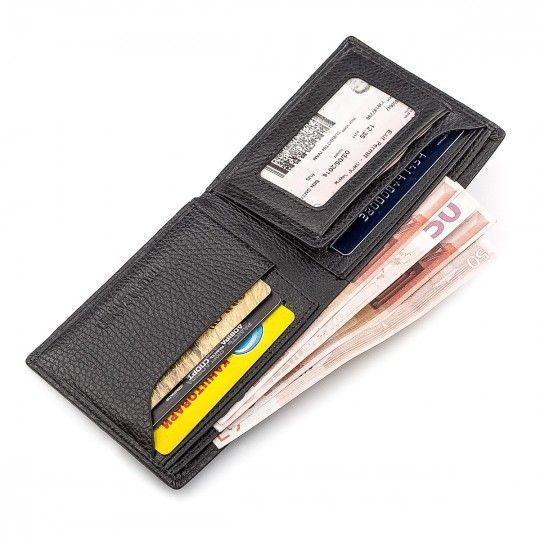 Великолепная модель кошелька для любителей минимализма. У изделия нет габаритной застежки и карманы для монет. Аксессуар оснащен двумя отделениями для купюр и ячейками для банковских карт. Также есть уголок-держатель, карман близлежащего типа и прозрачное отделение для фото или документов. На лицевой стороне изображен обновленный брендовый знак. Материалом для изготовления данной модели кошелька выбрана качественная натуральная кожа, благодаря чему аксессуар отличается прочностью, износостойкостью.