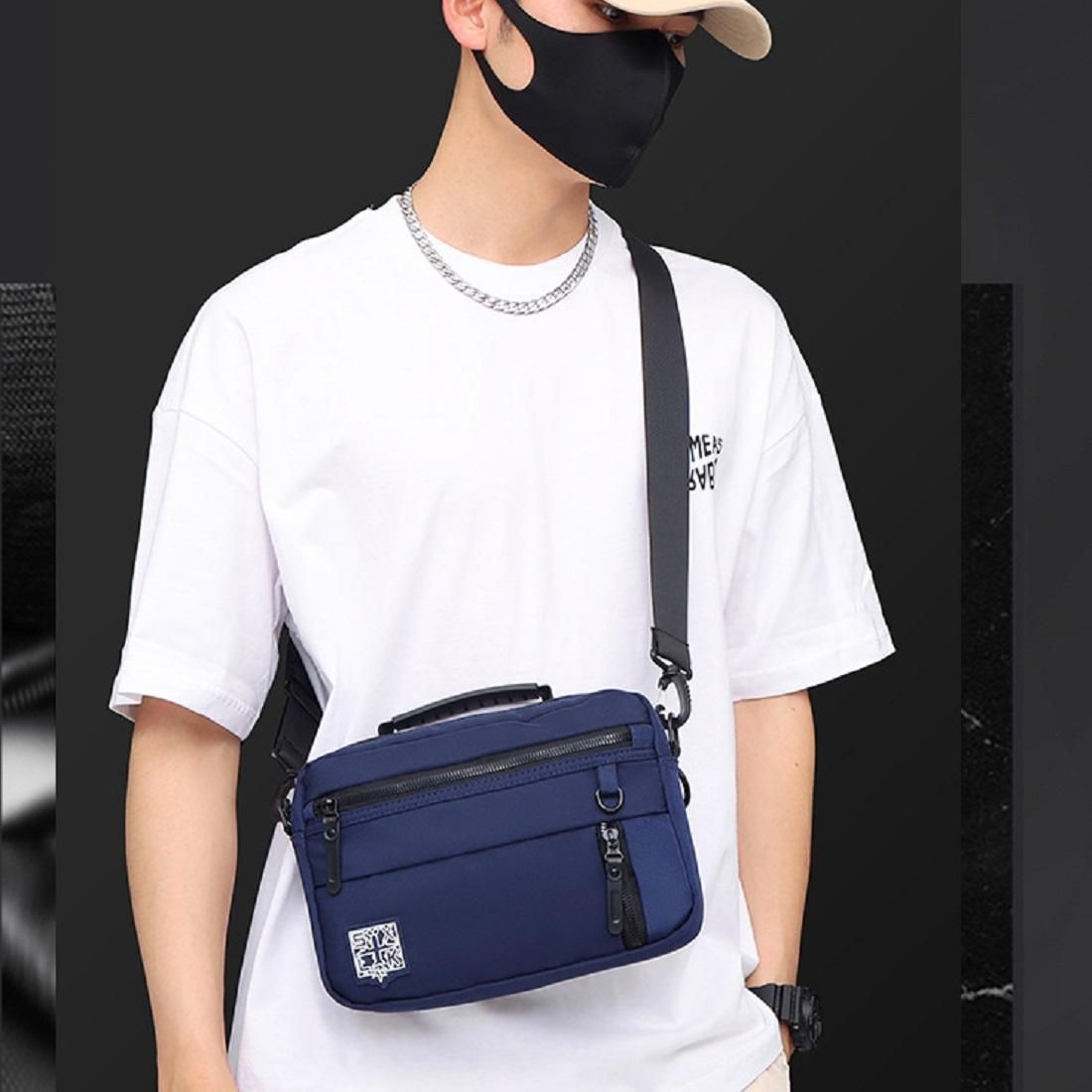 Чоловіча сумка через плече Confident AT09-T-23356A пошита із міцного текстилю Розміри: 22 x 15 x 6 см. Сумка має одне основне відділення. З лицьового боку є дві додаткові кишені на блискавках різних розмірів, і одна з тильного боку. Усередині основного відділу також є невеликі кишеньки для дрібниць. Наплічний текстильний ремінь, регулюється по довжині, знімається за допомогою карабінів. Є додаткові кріплення, що дозволяють перестебнути ремінець на задню спинку виробу та носити її як поясну сумку. Також модель оснащена короткою ручкою для зручності переноски. Підкладка: текстиль. Колір синій Колір фурнітури чорний.