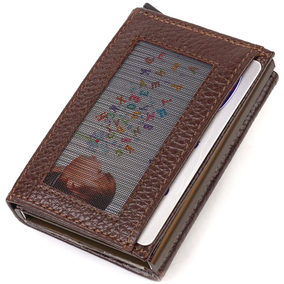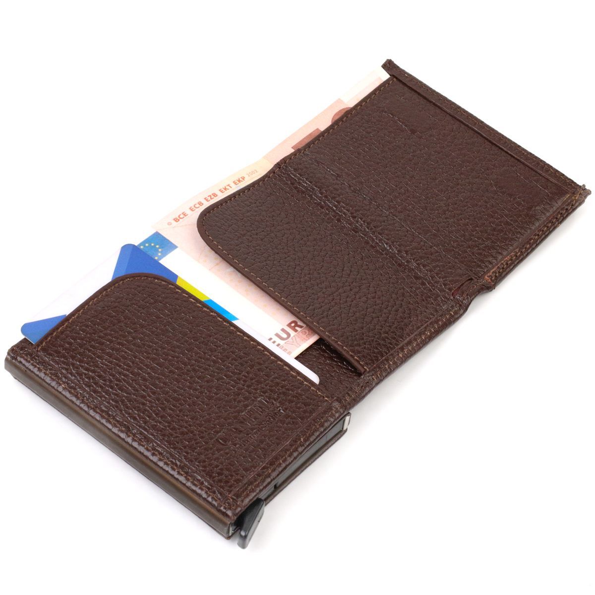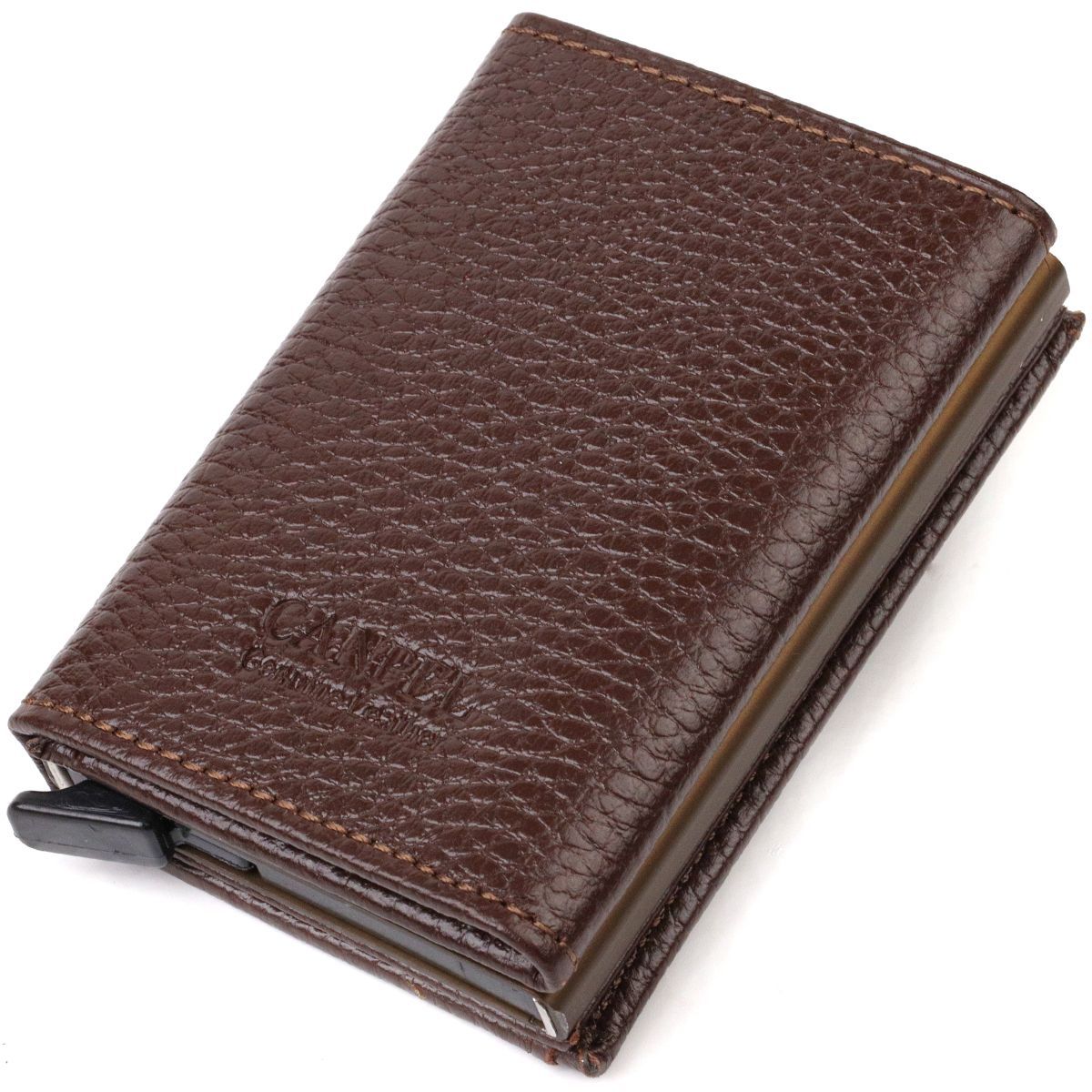 Мужской картхолдер в три сборки с автоматическим механизмом из натуральной кожи флотарий Canpellini 21934 коричневый