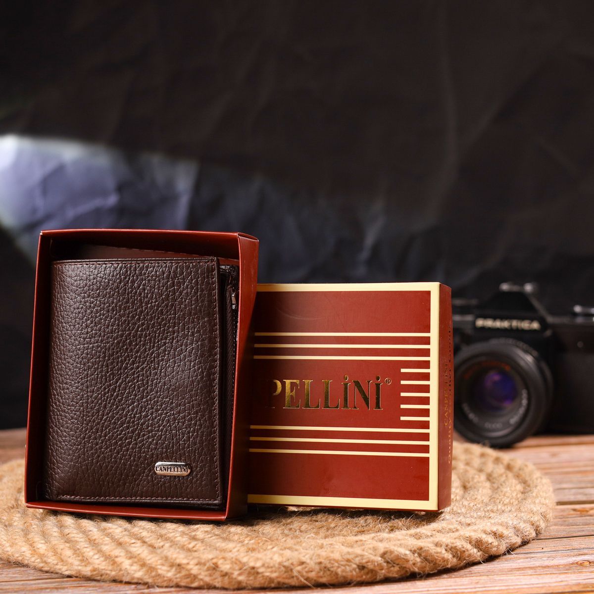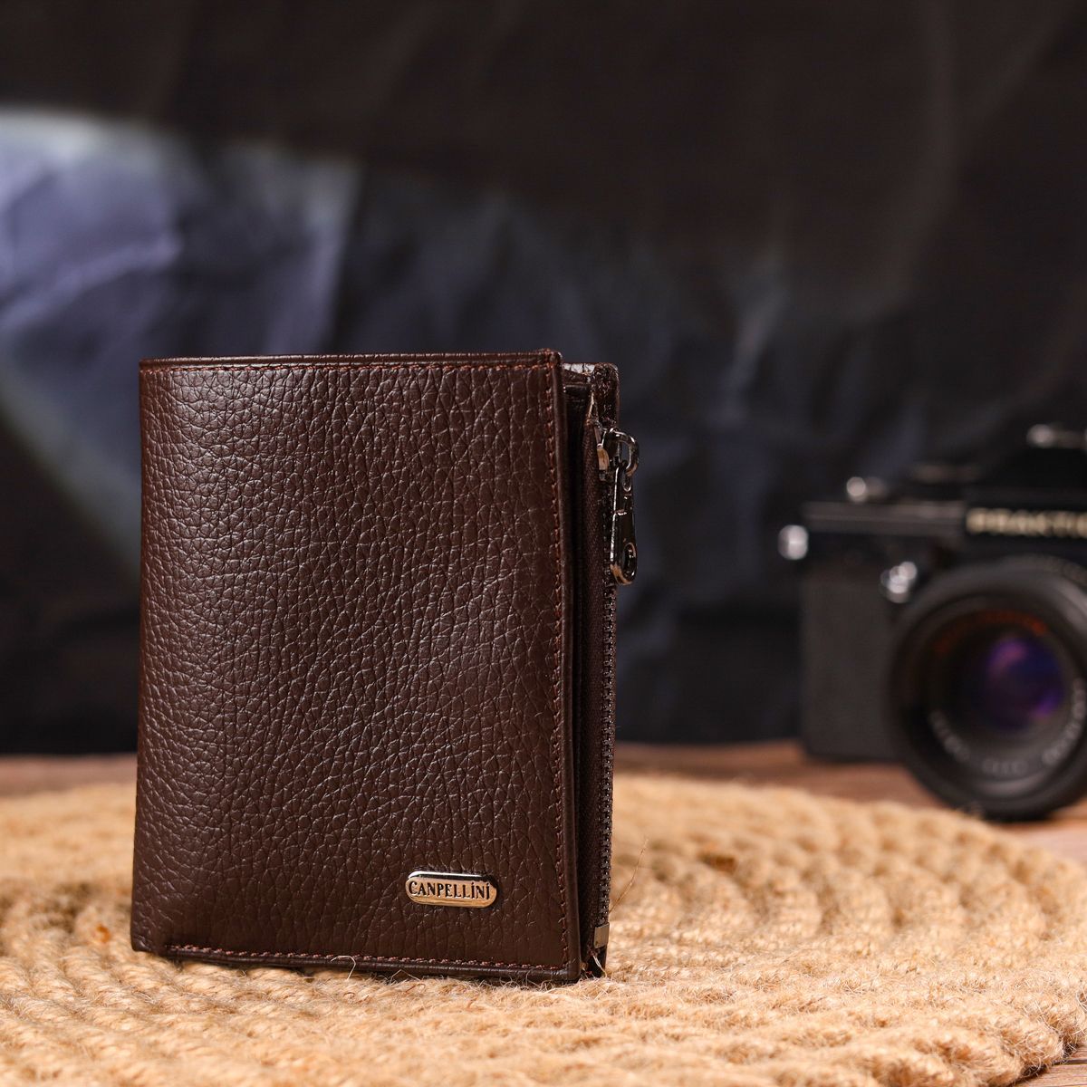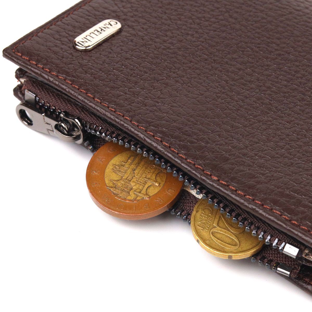 Мужской компактный вертикальный кошелек из натуральной кожи Canpellini 21674 коричневый