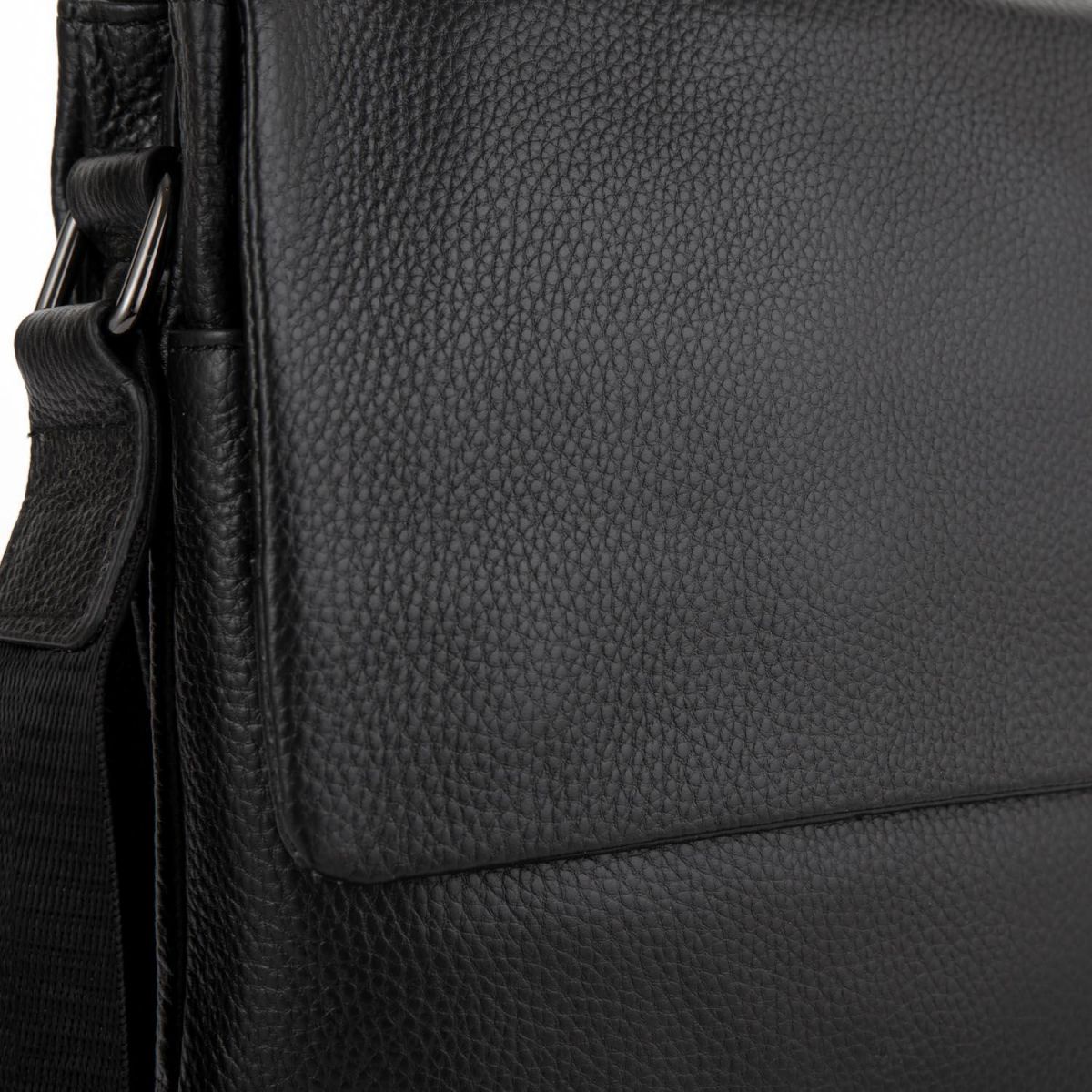 Чоловіча сумка Tiding Bag A25F-FL-875A виготовлена із натуральної шкіри чорного кольору. Структура шкіри матова, зерниста. Розміри становлять 22,5 x 25 x 4 см. Особливості: має одне головне відділення, яке розділене перегородкою відкритого типу. Відділення закривається на блискавку та додатково фіксується клапаном на магнітах. Всередині головного відділення є кишеня відкритого типу розміром 16х13 см. З лицьового боку розташована горизонтальна кишеня відкритого типу з розміром 21х20 см, захована під клапаном. З задньої частини месенджер має кишеню на блискавці з розміром 16х13 см. Месенджер має середню жорсткість, що добре тримає форму. Підкладка – текстиль. Плечовий ремінь регулюється по довжині, в діапазоні 85-150 см. Колір чорний. Колір фурнітури: темне срібло.