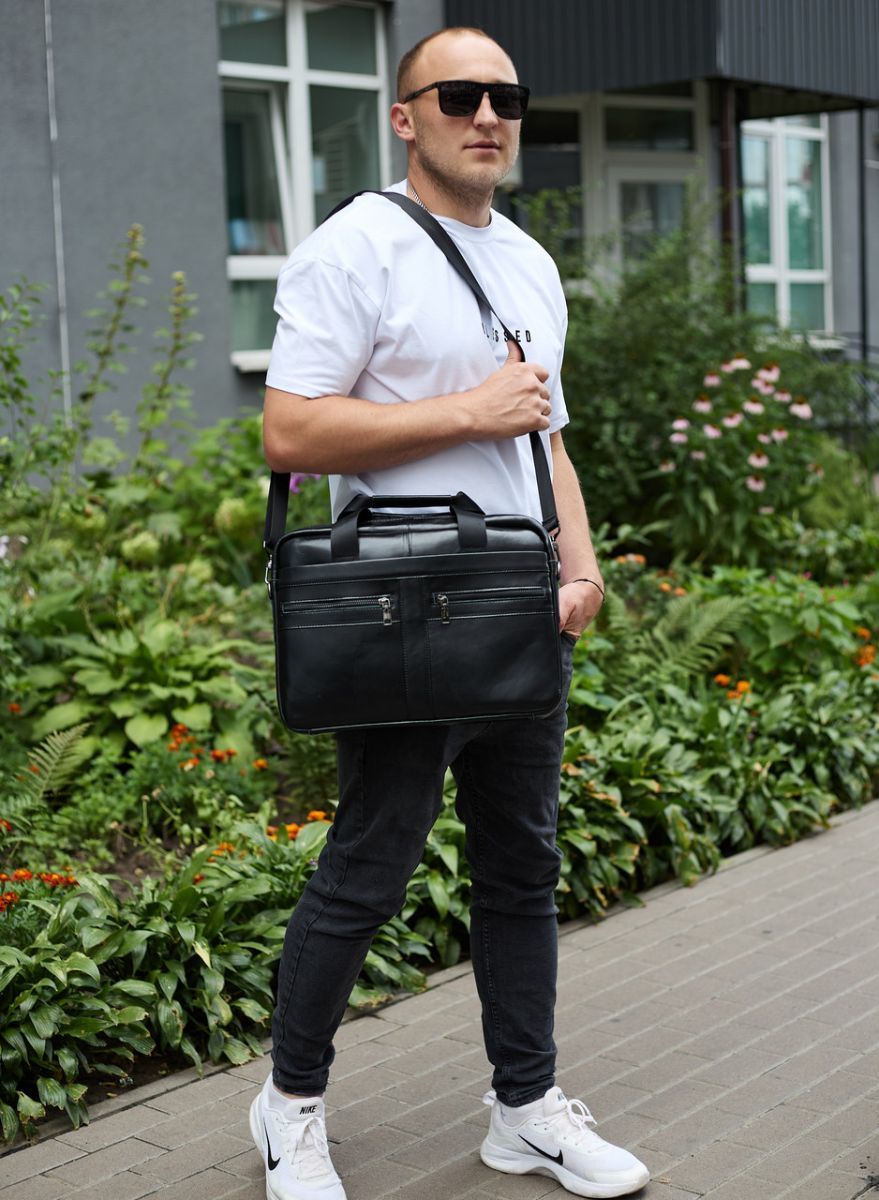 Практичний чоловічий шкіряний портфель ідеально підходить як для роботи в офісі, так і для щоденного використання.
