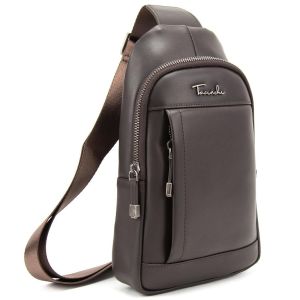 Чоловічий шкіряний коричневий слінг на плече Tavinchi TV-827C