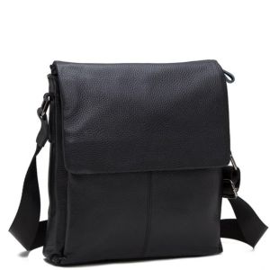 Чоловіча сумка від Tiding Bag виконана з гладкої шкіри з зернистою поверхнею. Каркас у сумки не жорсткий. Для носіння використовується регульований плечовий ремінь. Основний відділ закривається на клапан з магнітною застібкою. Під клапаном розташовано два основних і один додатковий відділи, що закриваються на блискавку. Всередині є кишені-органайзери. З тильного боку розташована кишеня на блискавці. Розмір: 23 х 27 х 6см. Довжина ременя – 145 см.