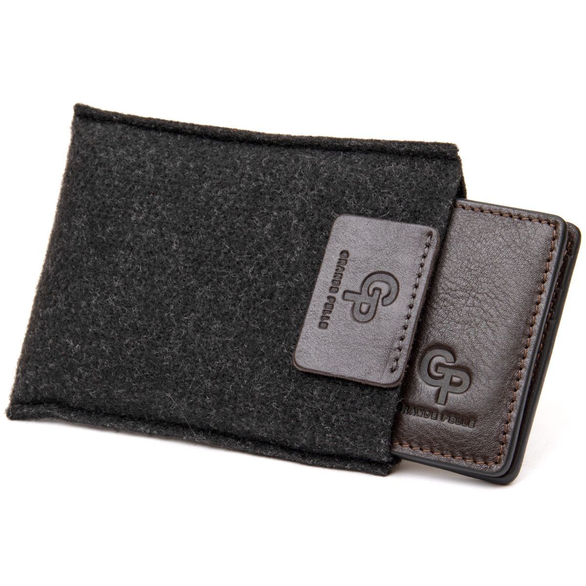 Хороший кожаный зажим для денег для тех, кому надоели большие кошельки. Это изделие легко поместится в сумку или карман брюк, при этом Вы не почувствуете дискомфорта. Цвет – темно-коричневый с глянцевым отливом. Кожа на ощупь мягкая и приятная. Прекрасно подойдет в качестве подарка, для этого он упакован в специальный фирменный чехол.