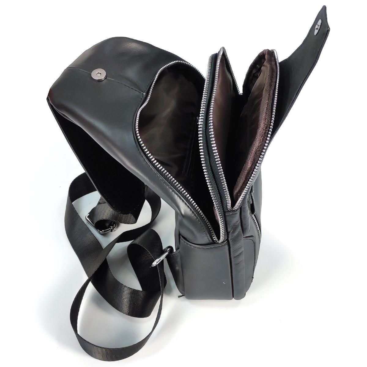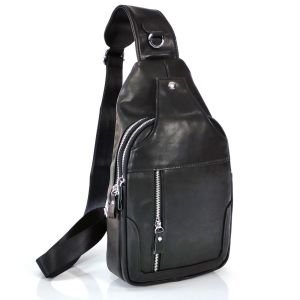 Чоловічий слінг Tiding Bag FL-N2-4004A із гладкої шкіри чорного кольору.