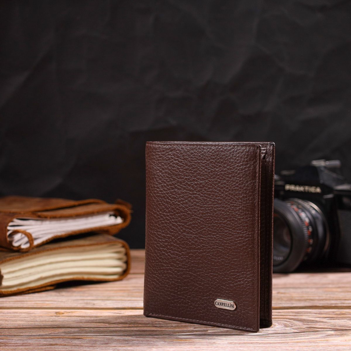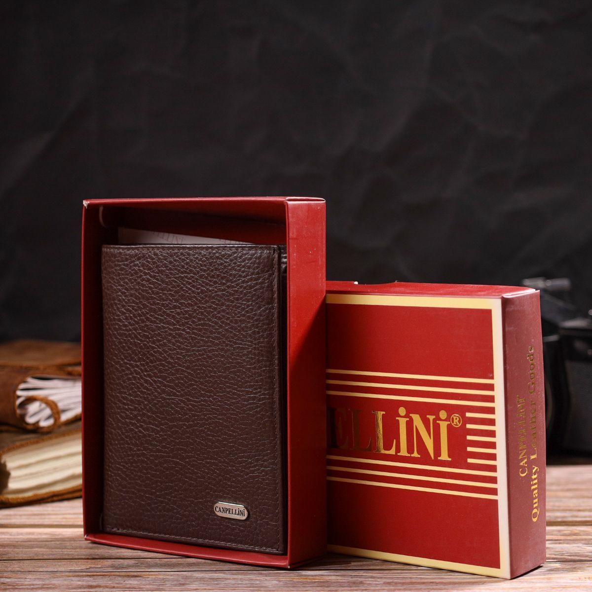 Мужской современный кошелек вертикального формата из натуральной кожи Canpellini 21756 коричневый