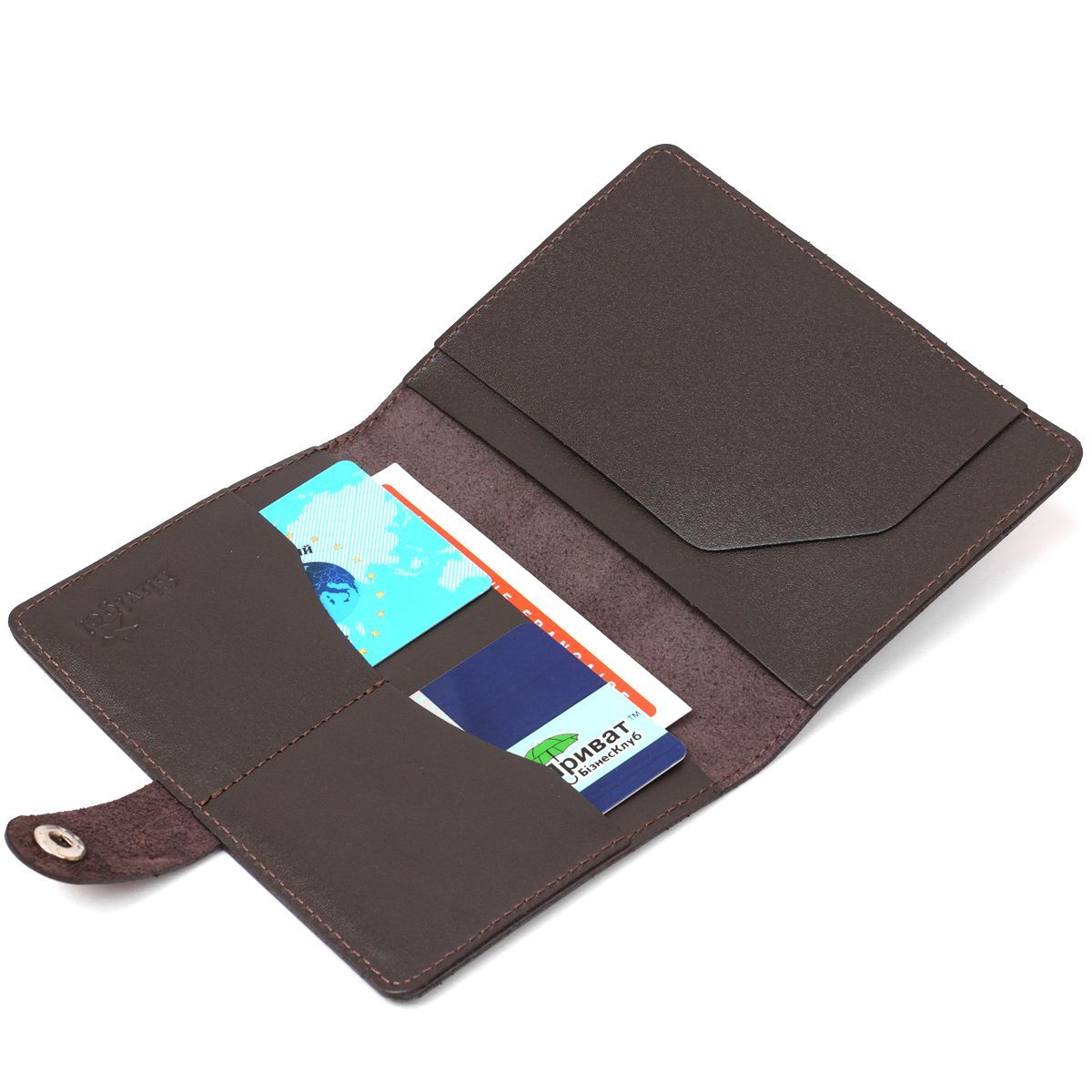 Стильный мужской тревел-кейс для хранения документов, карт и т.д. Материал – натуральная кожа с отличными эксплуатационными характеристиками. Цвет изделия – темно-коричневый с небольшим блеском, фактура – гладкая и приятная на ощупь. Закрывается аксессуар с помощью кожаного хлястика на кнопке.