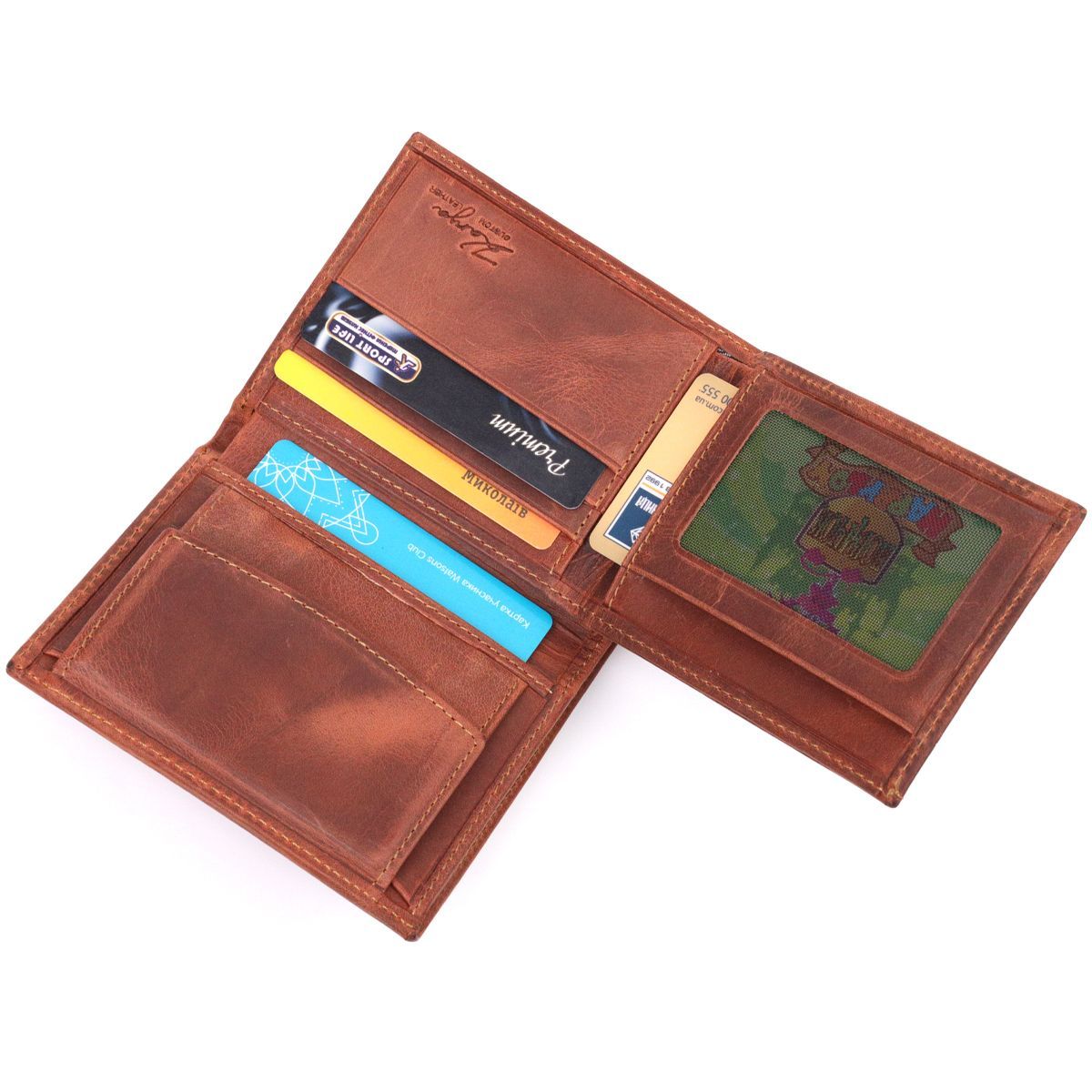 Мужской вертикальный портмоне без застежки в винтажной коже KARYA 21363 рыжий