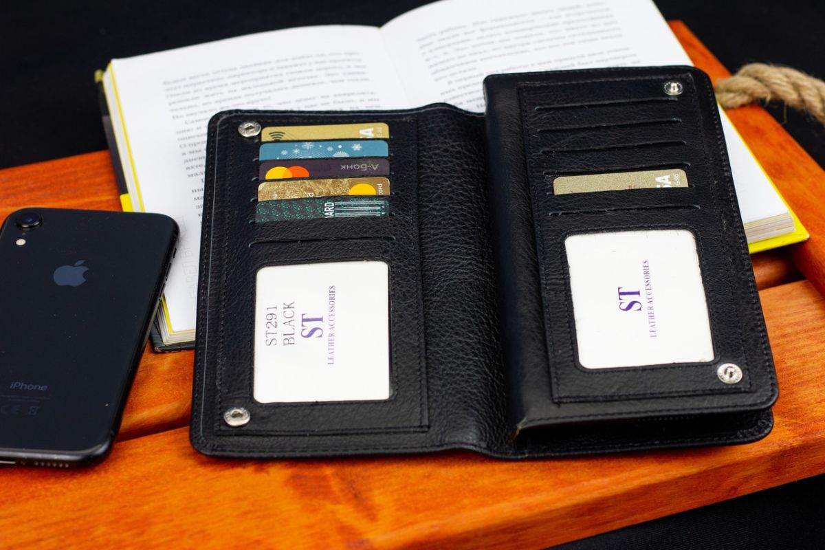 Чорний багатофункціональний чоловічий гаманець з натуральної шкіри МС291 ST Leather
