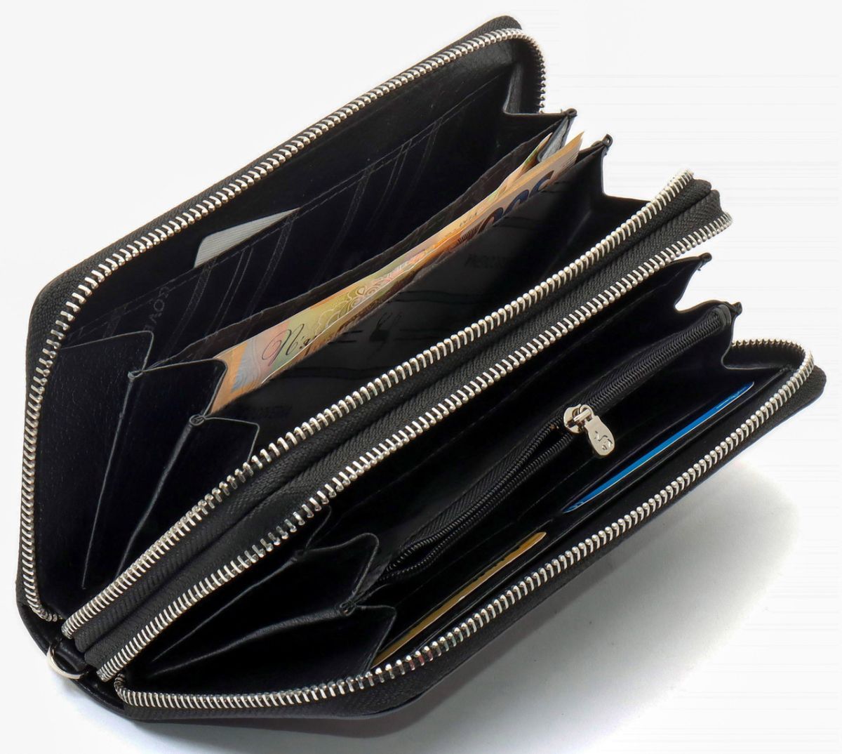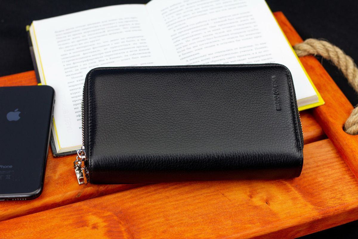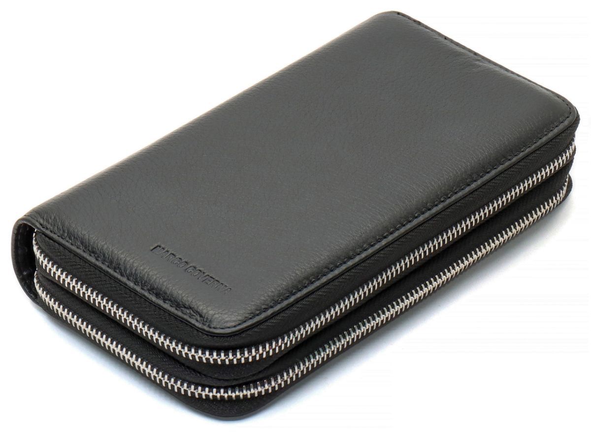 Чорний чоловічий гаманець-клатч на дві блискавки з натуральної шкіри Marco Coverna MC-801