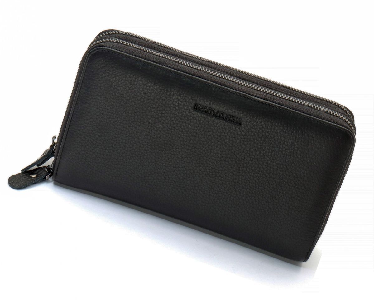 Чорний гаманець-клатч на дві блискавки з натуральної шкіри Marco Coverna B-5902B-1Q