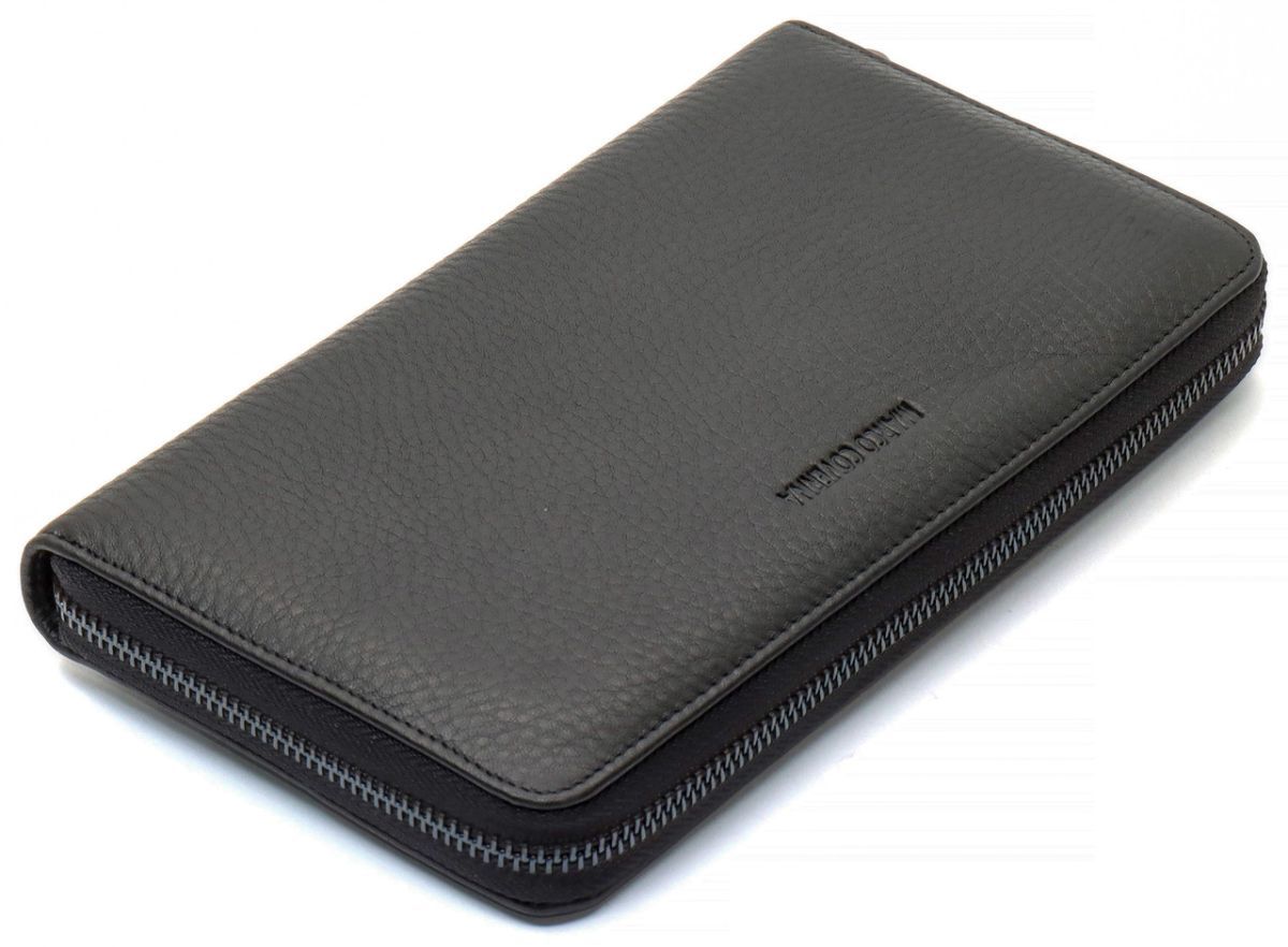 Чорний гаманець-клатч з блоком під картки під однією блискавкою з натуральної шкіри Marco Coverna МС-5901Q