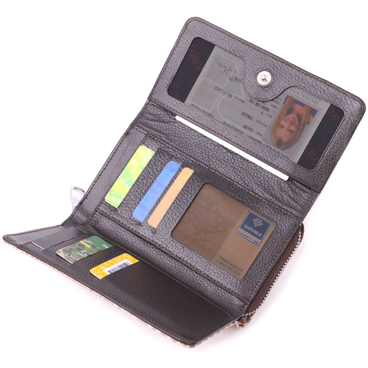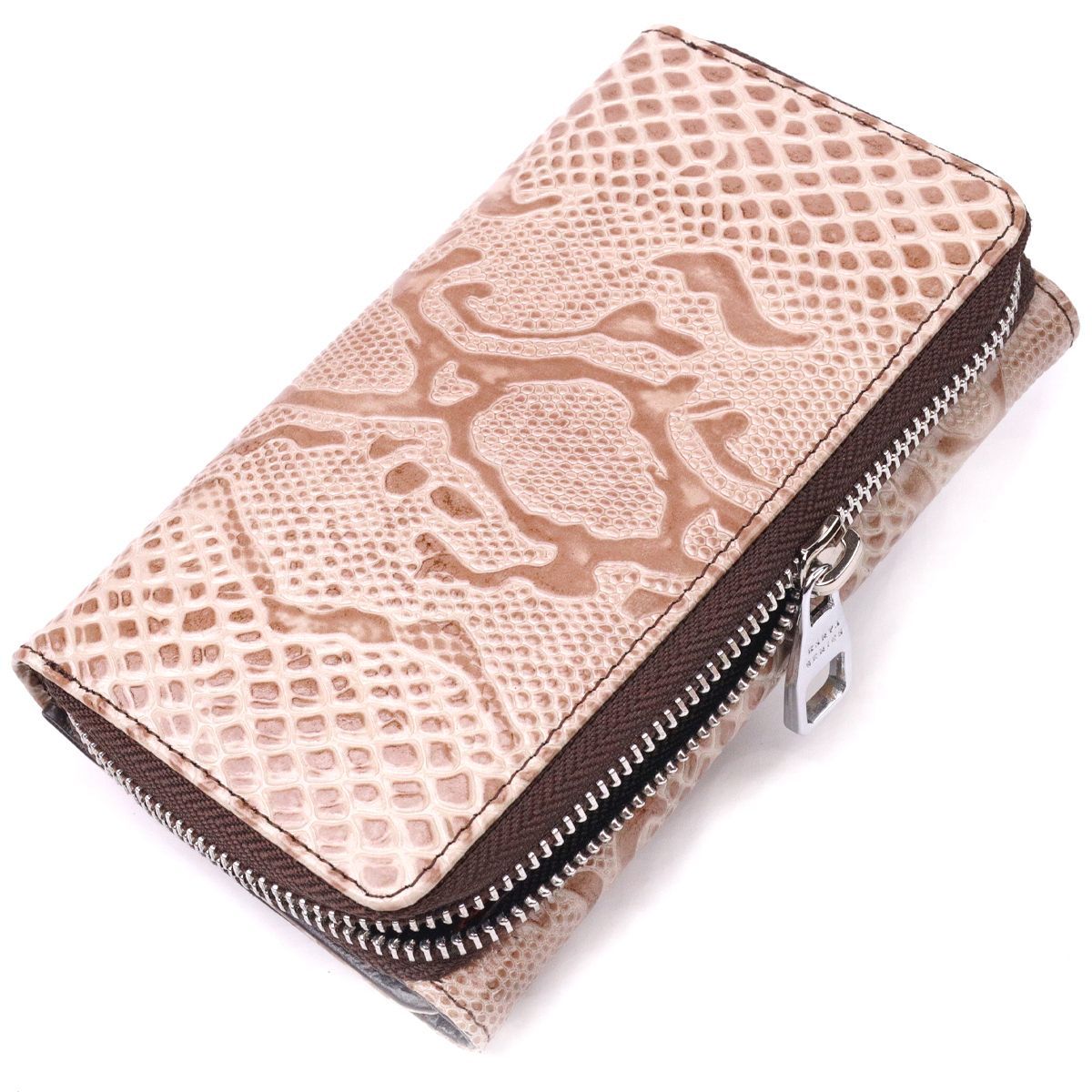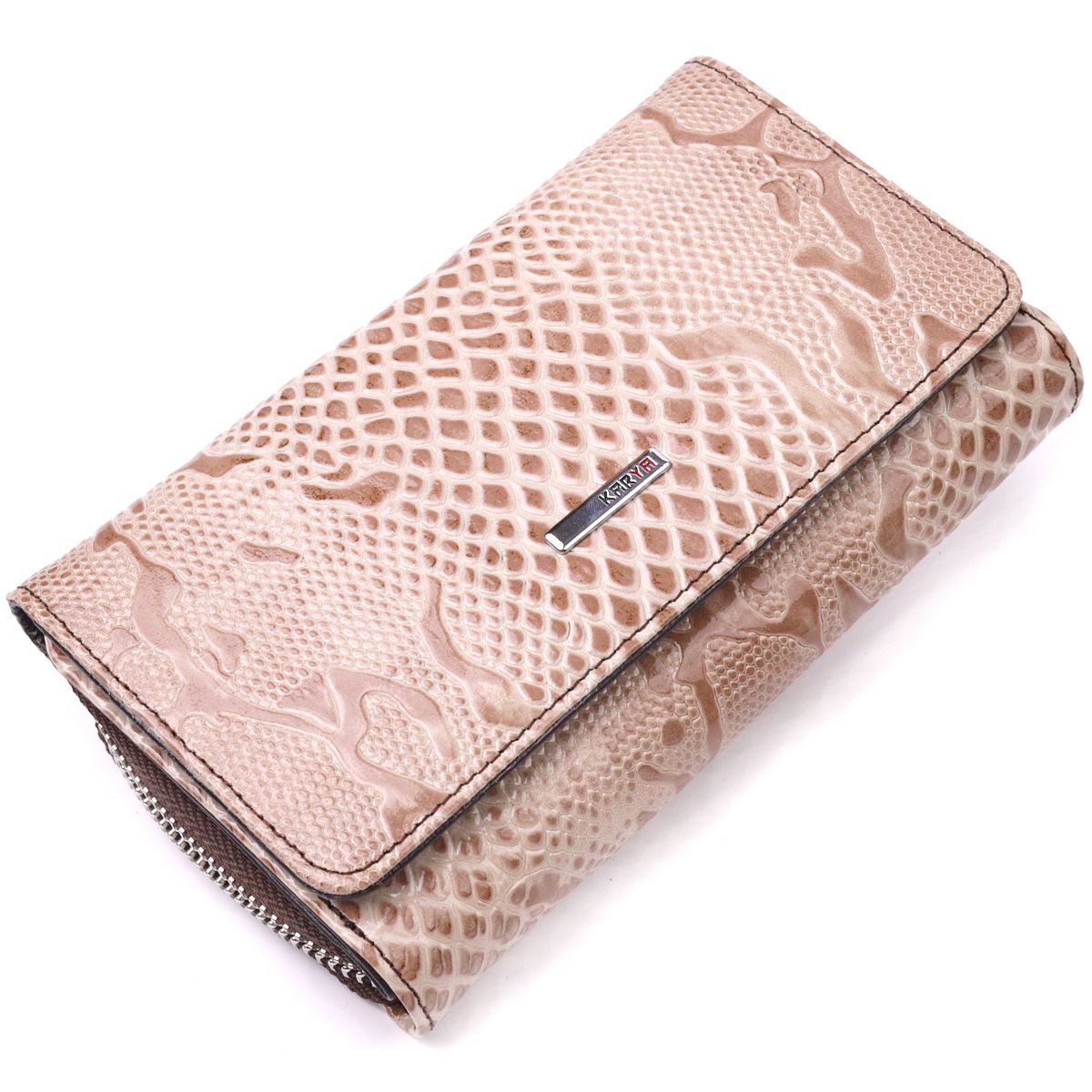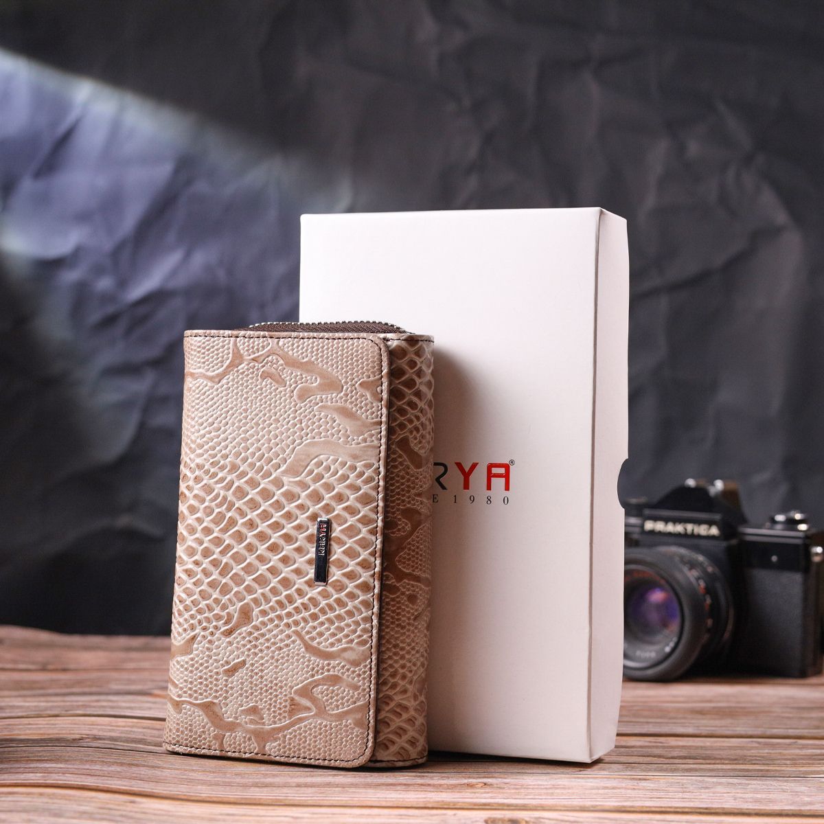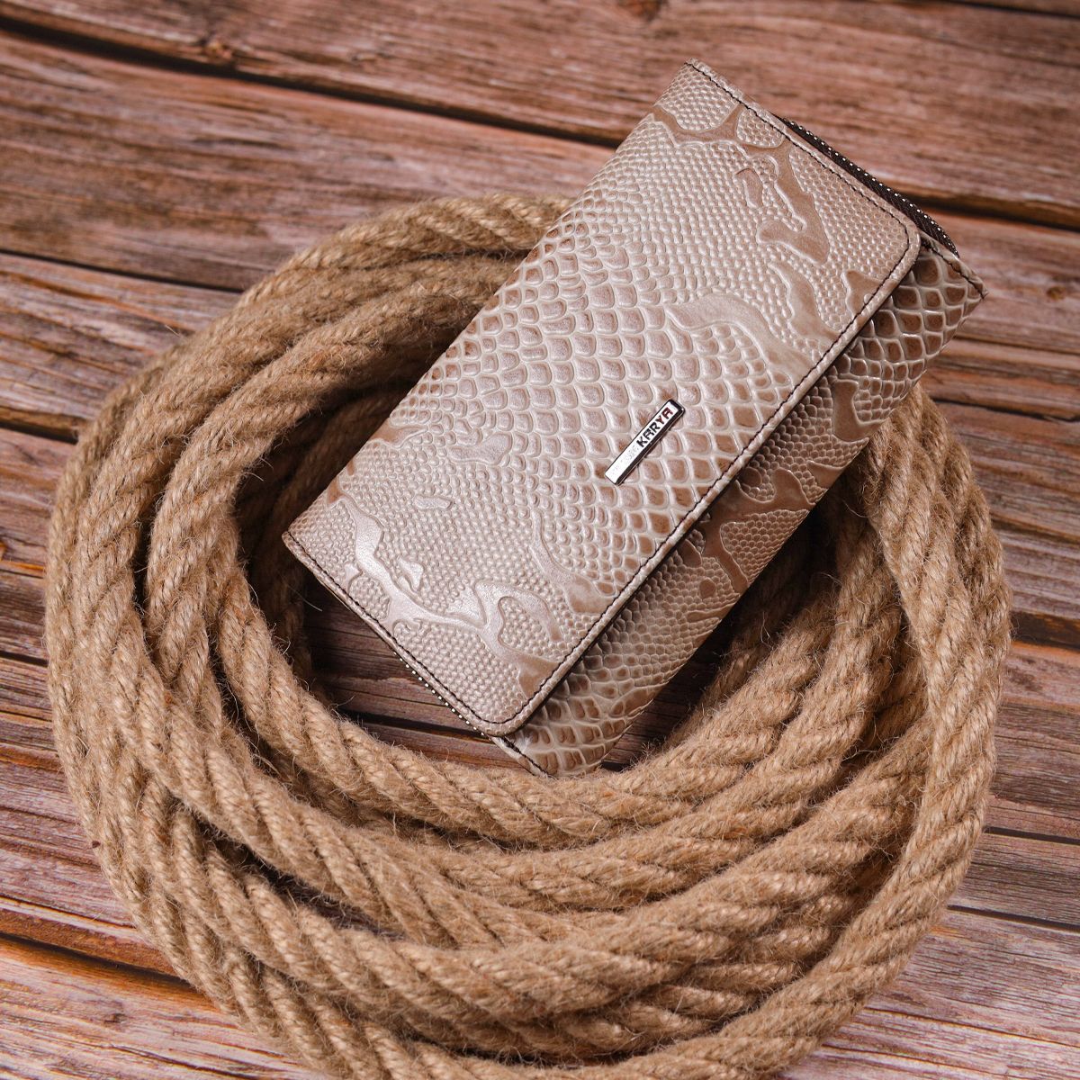 Великолепный женский портмоне из лакированной фактурной кожи KARYA 21430 бежевый