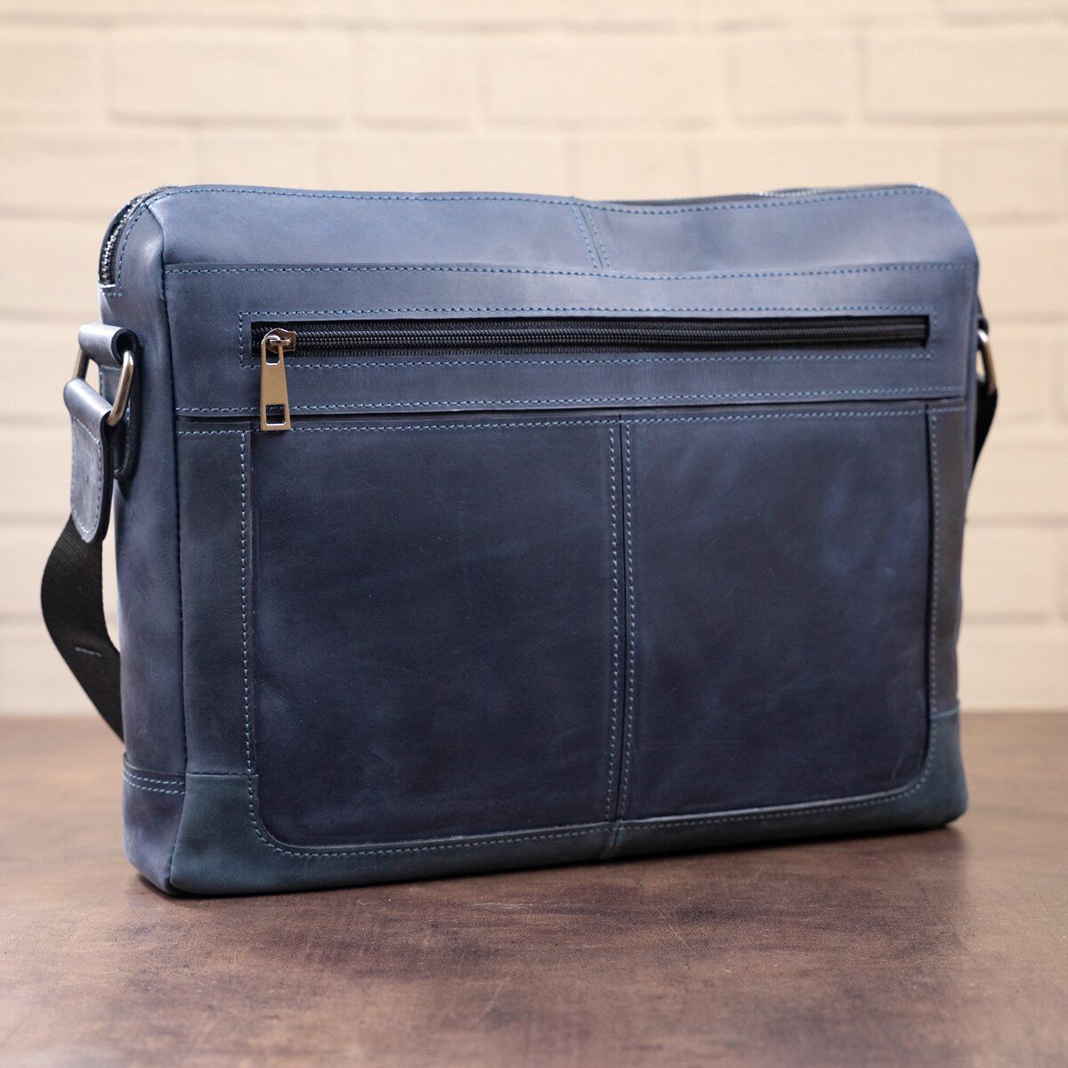 Деловая сумка из натуральной кожи высокого качества. Изделие популярного и оригинального голубого цвета. Урожай кожи смотрится очень дорого и стильно. Дизайн сумки продуман до мелочей. Вы можете носить сумку на плече. Внутри изделия имеется качественная текстильная подкладка. Ручка сумки не снимается. На лицевой и тыльной стороне аксессуара карманы на молнии. Модель упакована в тканевый мешок.