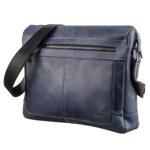 Деловая мужская кожаная сумка на плечо SHVIGEL 11249 синяя