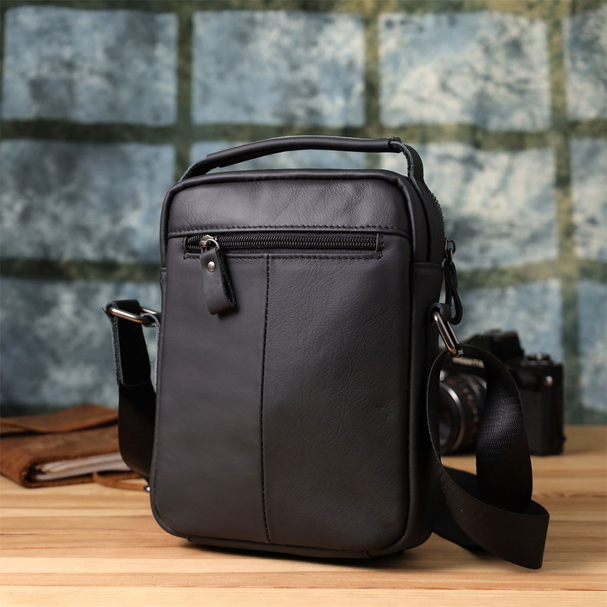 Чорна чоловіча сумка з матової натуральної шкіри - це практичний та стильний аксесуар, створений для тих, хто цінує зручність, стриману естетику та якість матеріалів. Завдяки універсальному дизайну сумка органічно впишеться в діловий гардероб, повсякденний образ або міський стиль. Вона стане надійним супутником протягом дня, дозволяючи завжди тримати необхідні речі під рукою і виглядати елегантно.