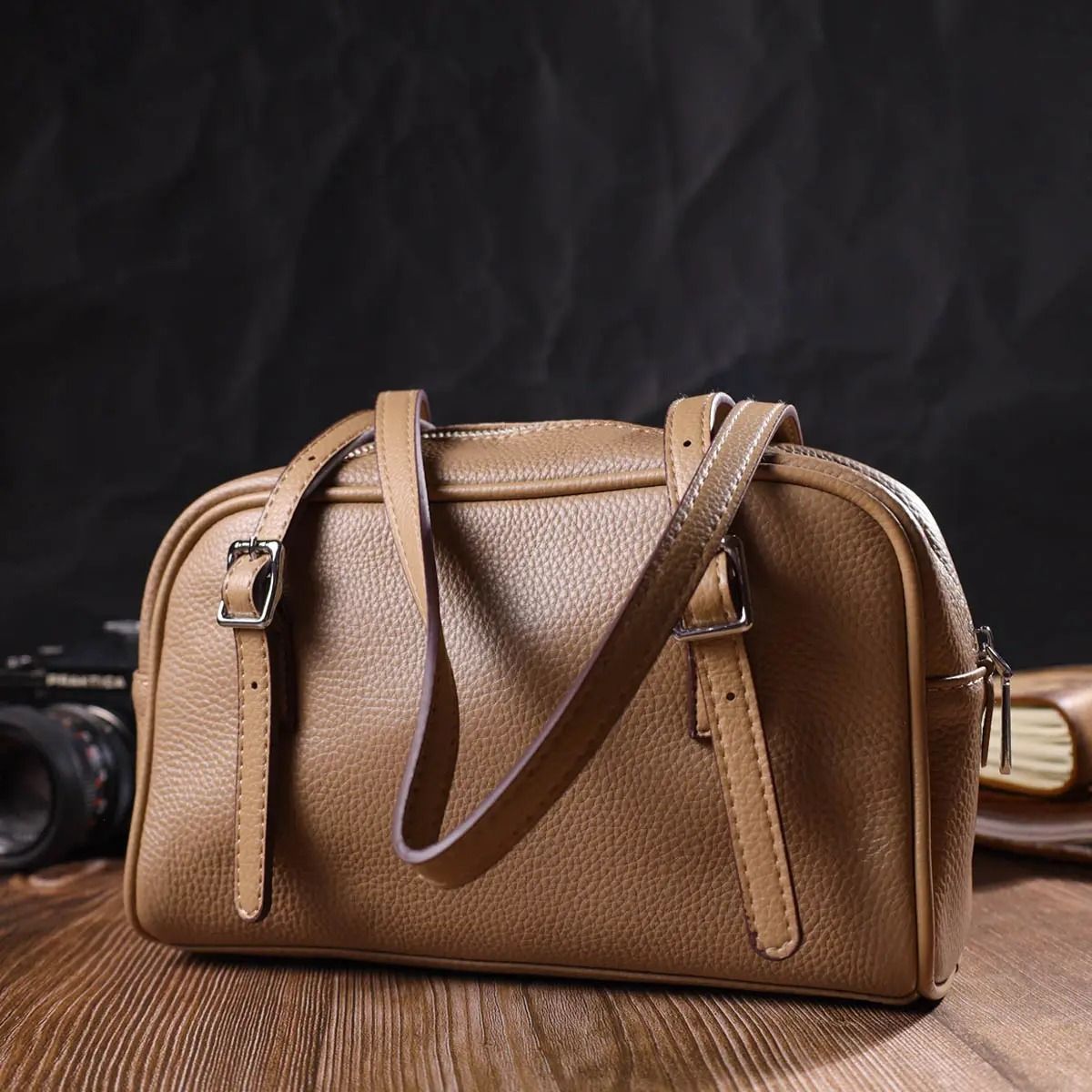 Деловая сумка-клатч со съемными ручками из натуральной кожи 22077 Vintage бежевая