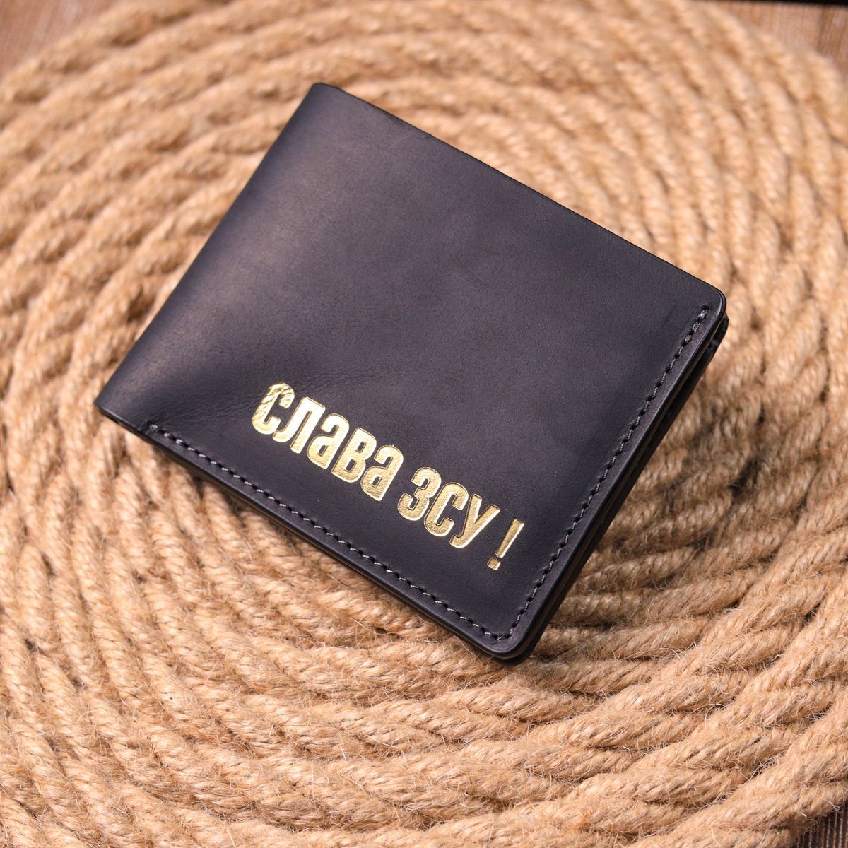 Добротное кожаное портмоне из винтажной кожи в два добавления Слава ВСУ Grande Pelle 16734 черный