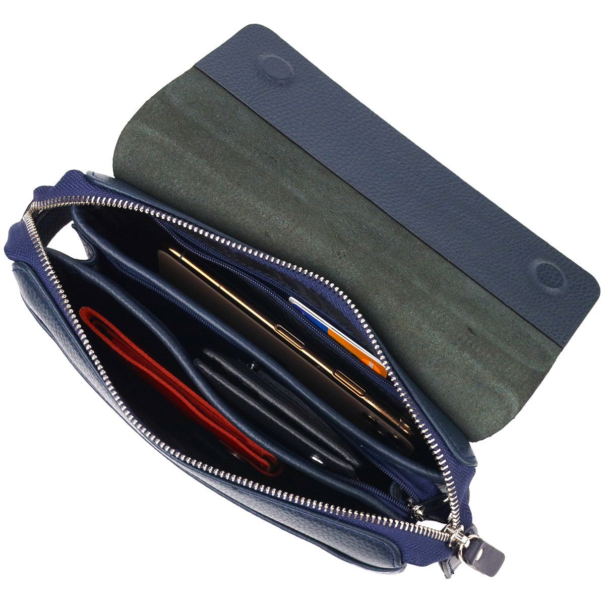 Добротный мужской клатч из натуральной комбинированной кожи Canpellini 21565 синий