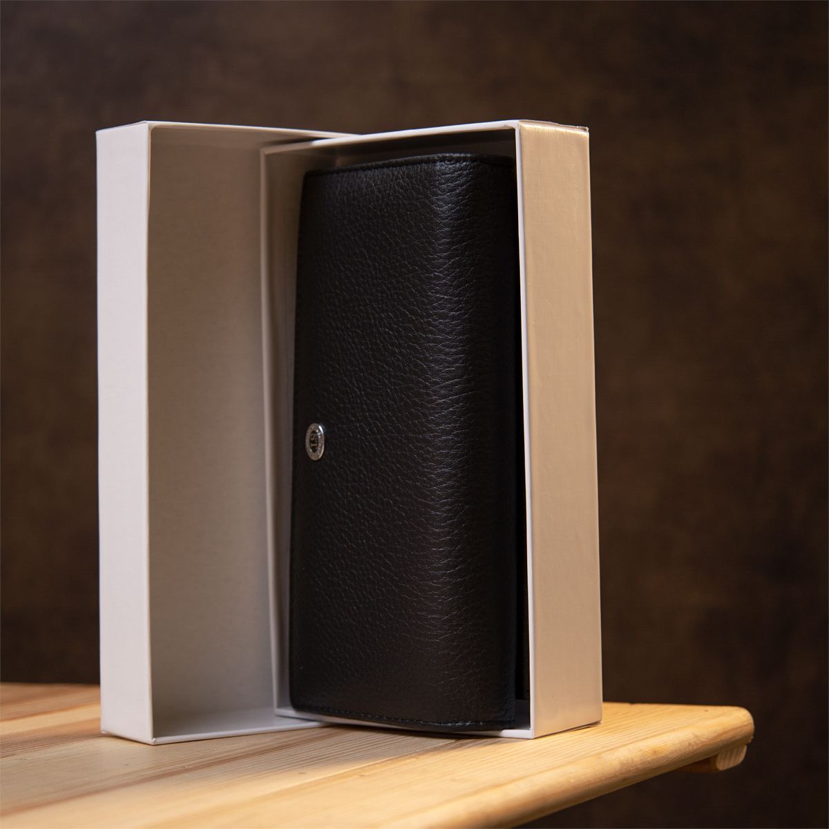 Вместительный кошелек из натуральной мягкой кожи в универсальном черном цвете. Обладает хорошо продуманным дизайном, что очень важно в современном мире. Все свои ценные вещи можно поместить в этот функциональный кошелек благодаря множеству отделений и карманов. Также интересным моментом является наружная монетница на двух магнитах, что выглядит необычно, но очень практично.