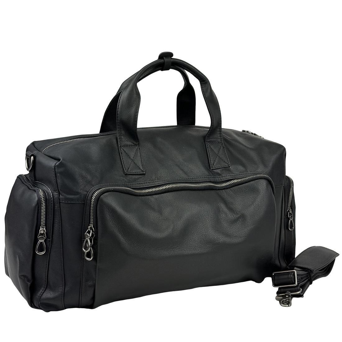 Містка дорожня сумка чорного кольору із натуральної шкіри