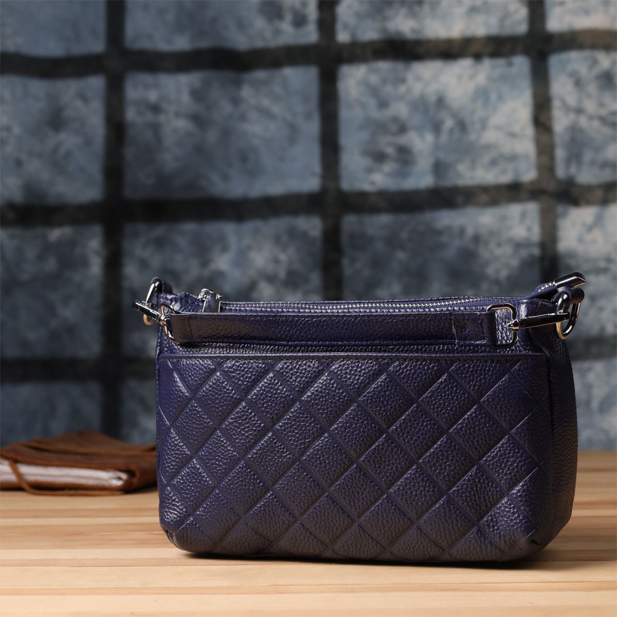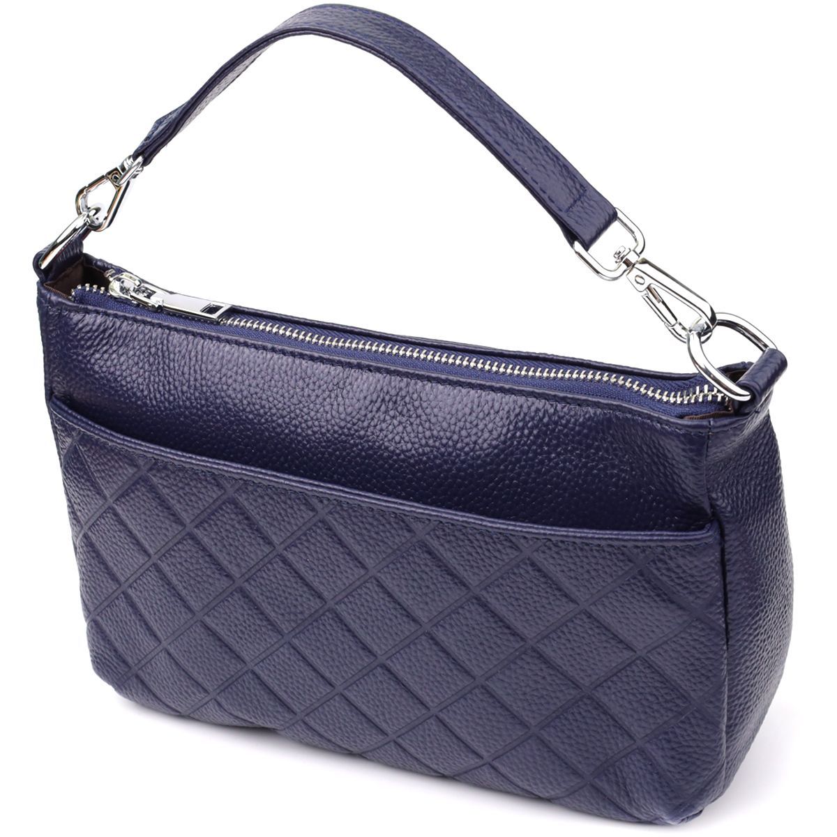 Елегантна сумка жіноча з натуральної шкіри з двома ремінцями Vintage 22928 синя