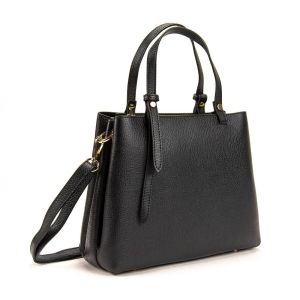 Класична модель жіночої сумки Firenze Italy F-IT-8705A, виконана в чорному кольорі. Шкіра щільна, сумка має каркас, тому добре тримає форму навіть порожня. Розміри: 29 x 22 x 13см. Закриваються два головні відділення на магніти. Усередині є кишеня перегородка на блискавці. Крім коротких ручок у комплекті йде довгий шкіряний наплічний ремінець на карабінах. Підкладка: текстиль. Колір: чорний. Колір фурнітури золото.