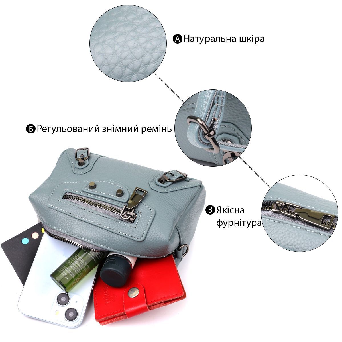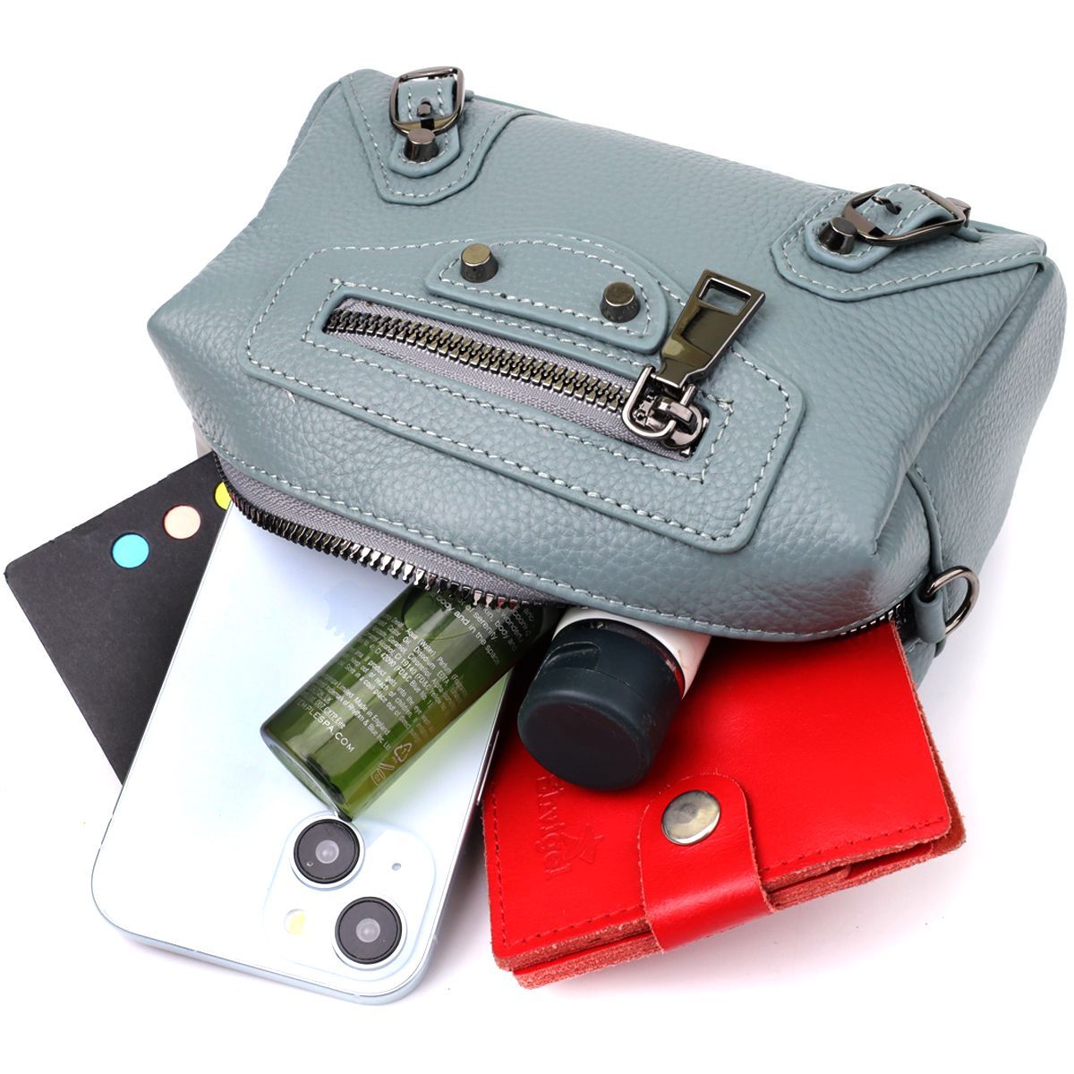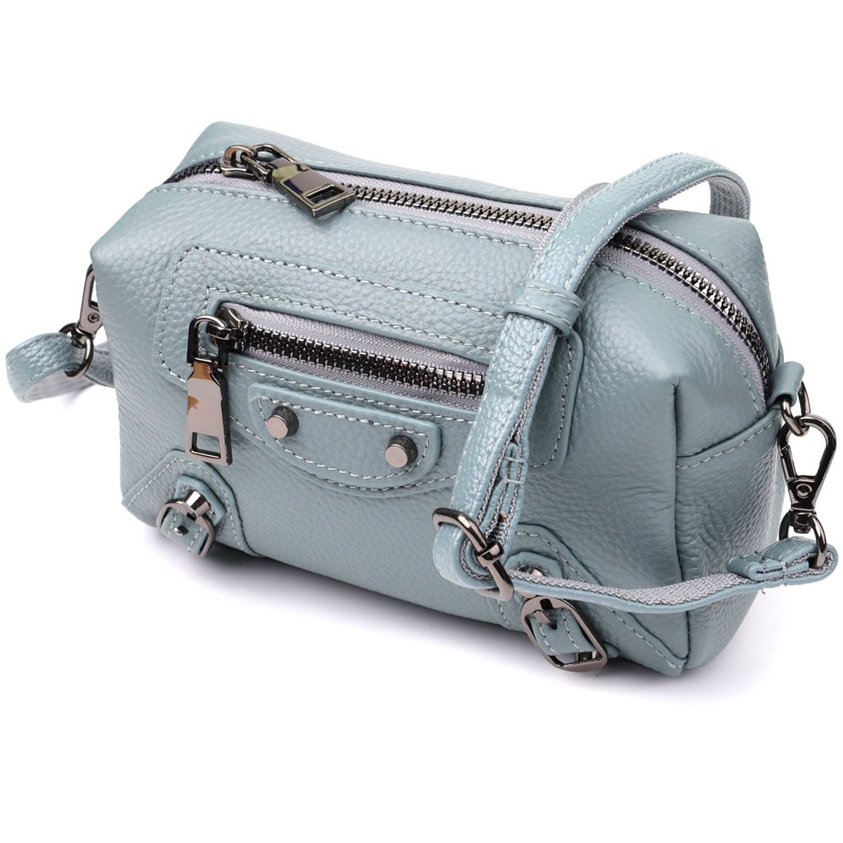 Елегантна жіноча сумка з натуральної шкіри із сучасним декором Vintage 22925 блакитна