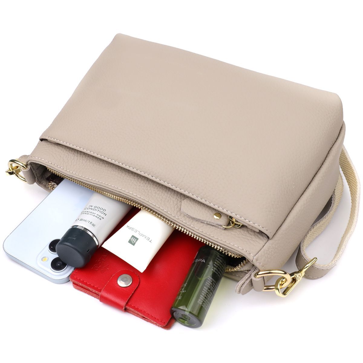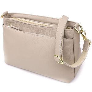 Елегантна жіноча сумка з натуральної шкіри з жорсткою основою Vintage 22985 cіра