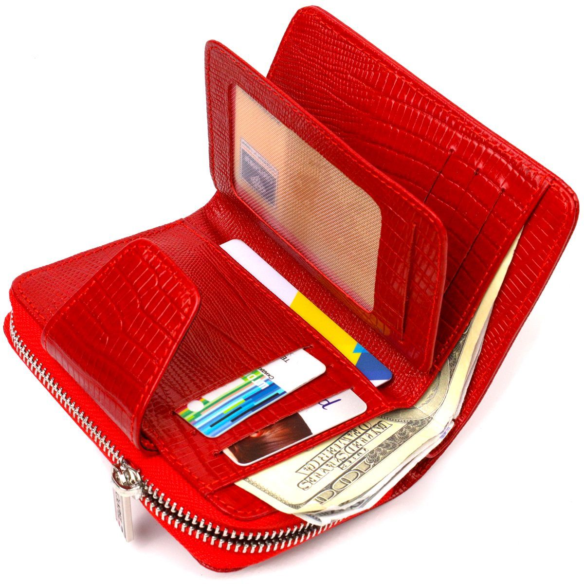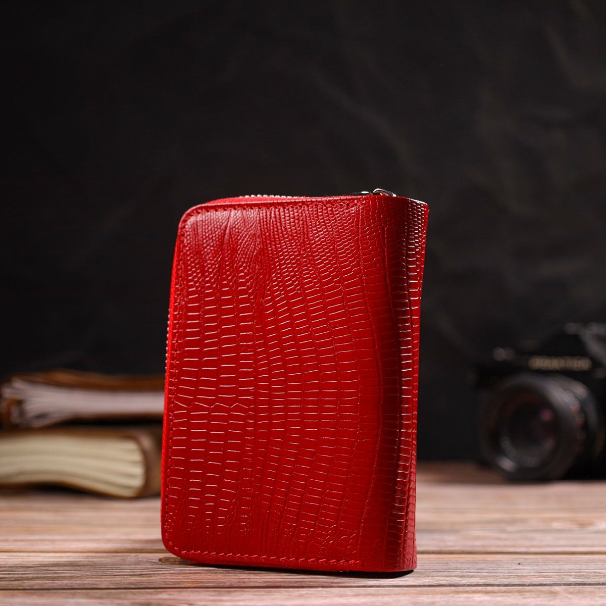 Фактурное женское вертикальное портмоне с монетницей на молнии из натуральной кожи с тиснением Canpellini 21731 красное
