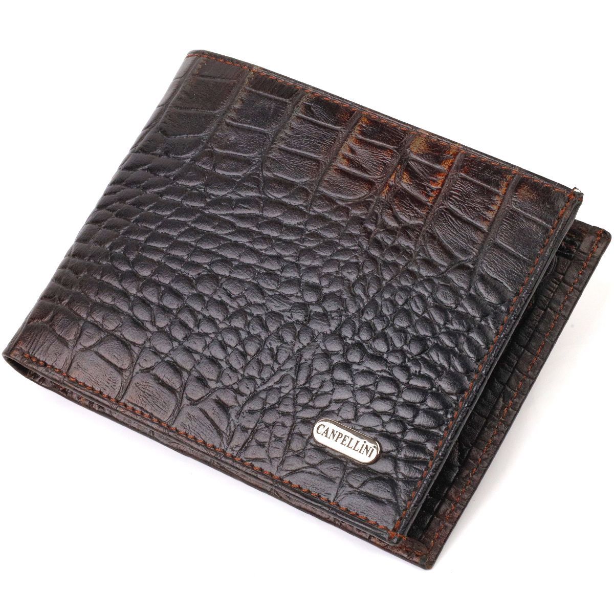 Фактурный мужской кошелек без застежки горизонтального формата из натуральной кожи с тиснением под крокодила Canpellini 21759 коричневый