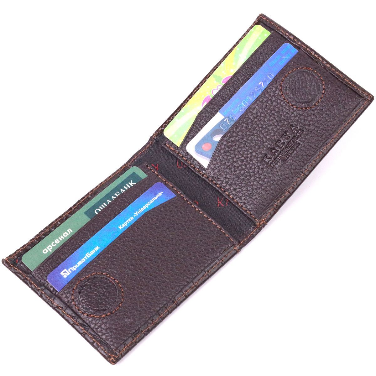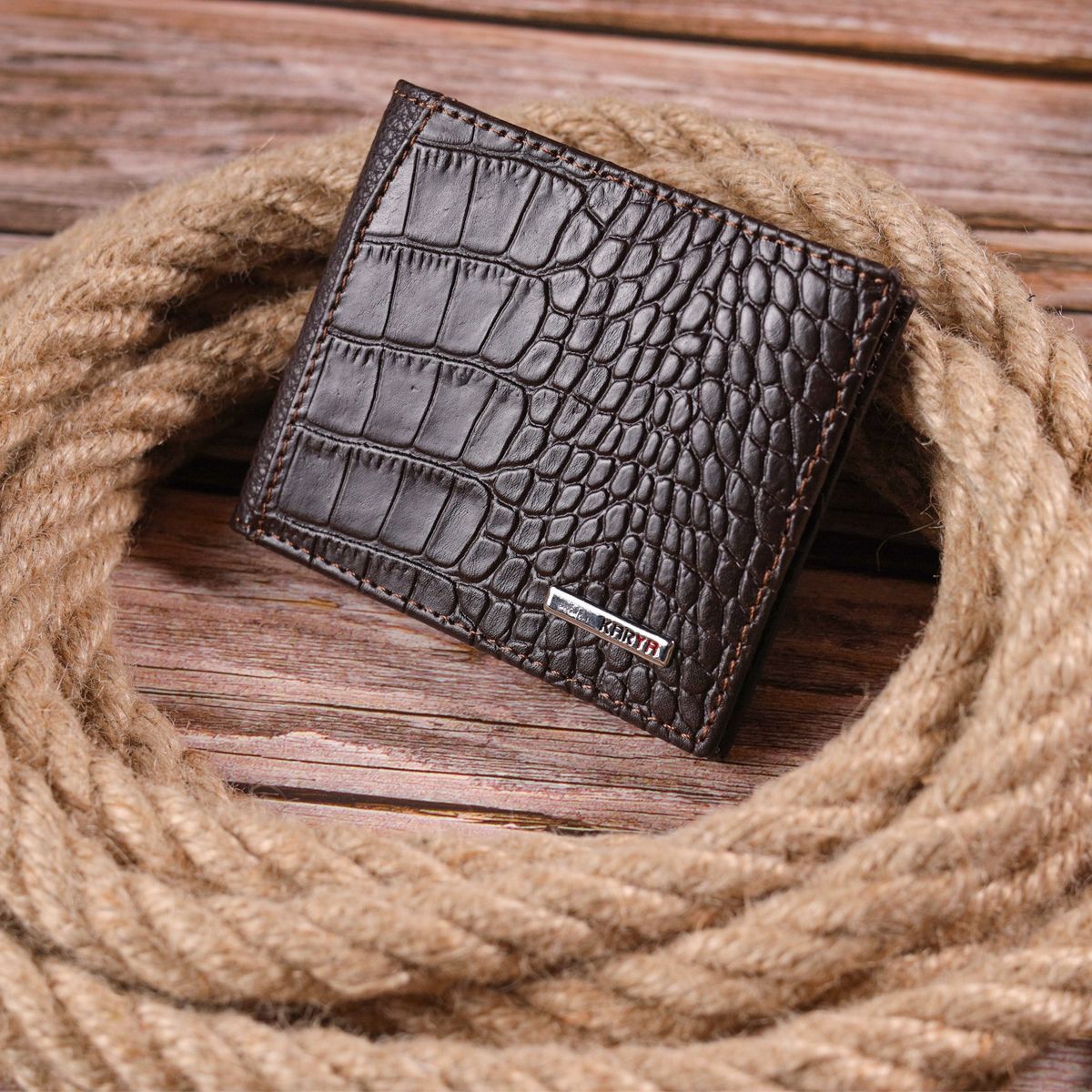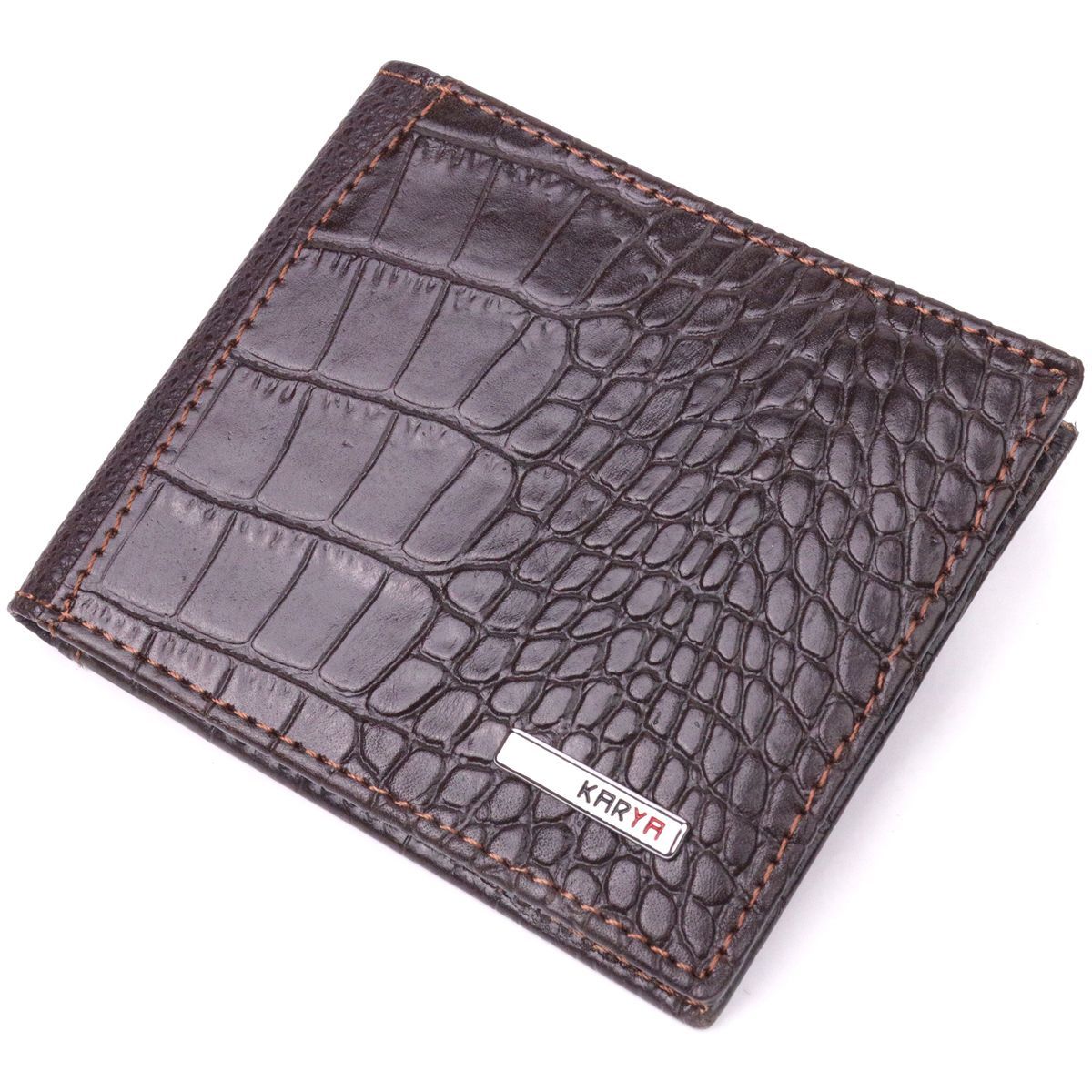 Фактурный мужской зажим с монетницей из натуральной кожи с тиснением под крокодила KARYA 21405 коричневый