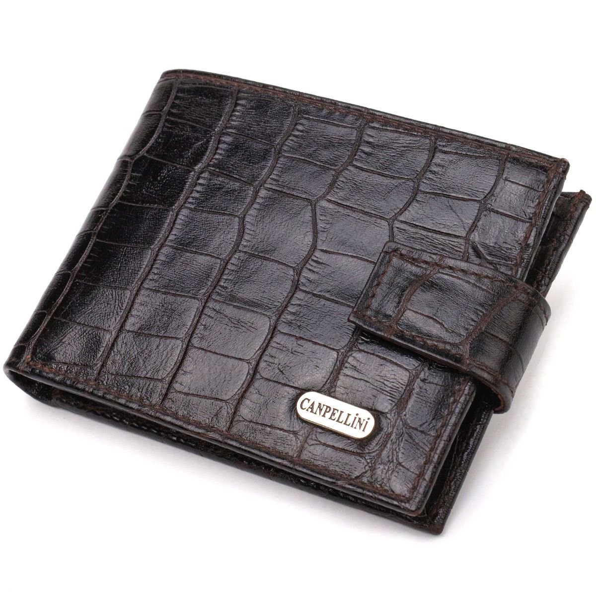 Фактурный небольшой кошелек из натуральной кожи с тиснением под крокодила Canpellini 21747 черный