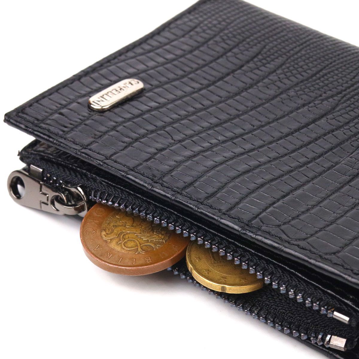 Фактурный вертикальный кошелек из натуральной кожи Canpellini 21672 черный