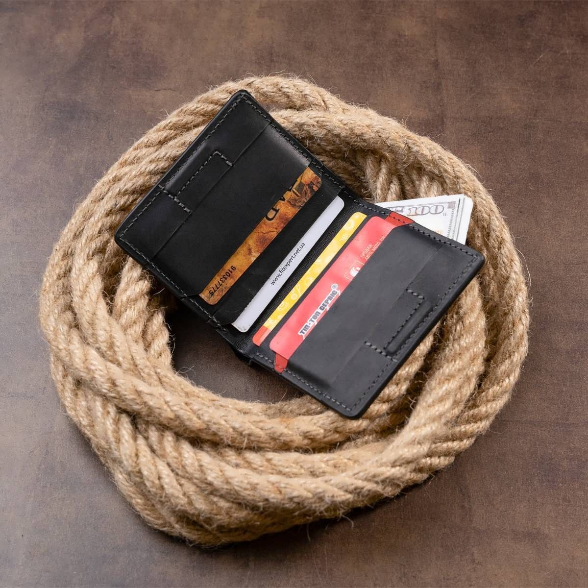 Стильный аксессуар с добавлением красных вставок кожи. Портмоне очень компактно. Идеально подойдет для любителей вещей, занимающих минимум места. Такой аксессуар максимально облегчит вашу жизнь, ведь дополнен самым нужным функционалом. Модель имеет оригинальный дизайн. Изделие будет по душе тем, кто предпочитает карты над купюрами и монетами. Современные мужчины экономят не только свое время, но и место в сумке. Компактные аксессуары всегда были и будут популярны. Выполнено портмоне в винтажной коже. В комплекте к изделию идет войлочный чехол, что делает его особенно привлекательным вариантом на подарок вашим знакомым и близким.