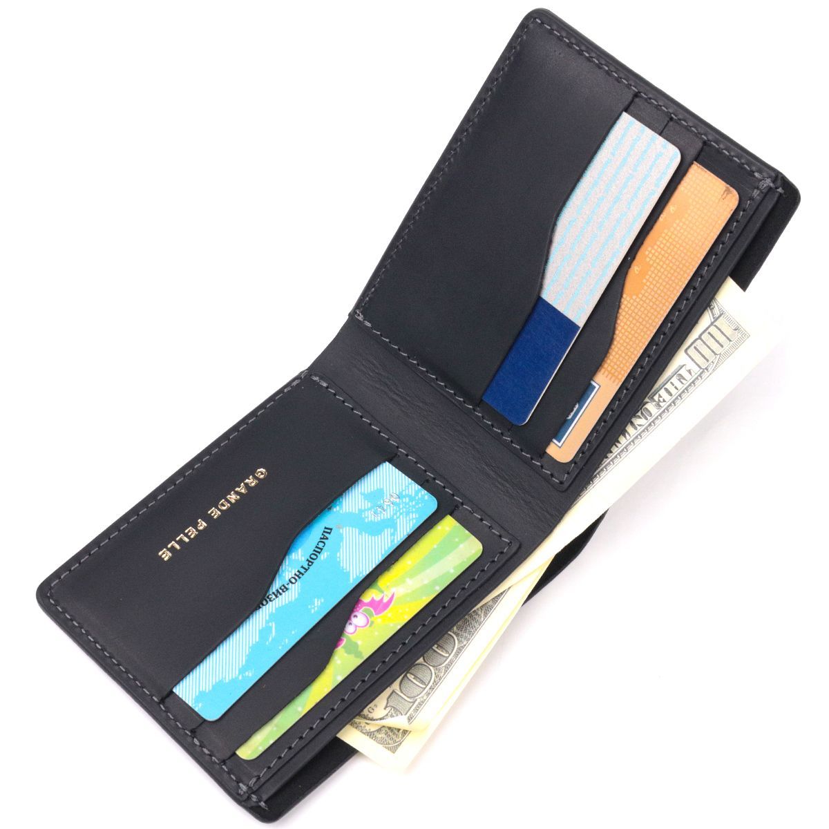 Функциональный кожаный кошелек без застежки Украина Grande Pelle 16755 черный