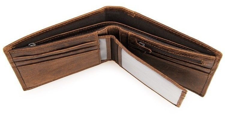 Современный многофункциональный мужской кошелек коричневого цвета. Аксессуар выполнен из натуральной высококачественной приятной кожи на ощупь. На задней наружной стороне находится кармашек для пластиковых карточек. Аксессуар упакован в текстильный чехол белого цвета.