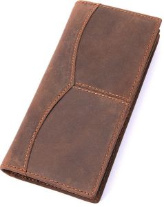 Надежный мужской кошелек из натуральной высококачественной винтажной кожи. Кошелек надежно прошит сверхпрочной нитью коричневого цвета. Швы ровные, аккуратные. Аксессуар упакован в текстильный чехол.