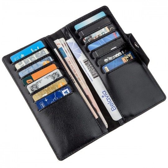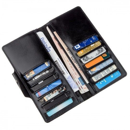 Мужской кожаный кошелек выполнен в классическом черном цвете. Мягкая и приятная кожа с естественным свойственным ей запахом. Аксессуар обладает высокой износостойкостью и неприхотлив в уходе. Ни для кого не секрет, что изделия из натуральной кожи носятся гораздо дольше, чем из заменителя или текстиля. Очень солидный дизайн с тисненым логотипом бренда на лицевой стороне. Закрывается модель на хлястике с кнопками (ближнюю или дальнюю). Особенностью модели есть то, что самостоятельно регулируете ее наполненность, закрывая его на одну из кнопок. Модель доступна в разных цветах и типах кожи и станет отличным подарком по любому поводу.