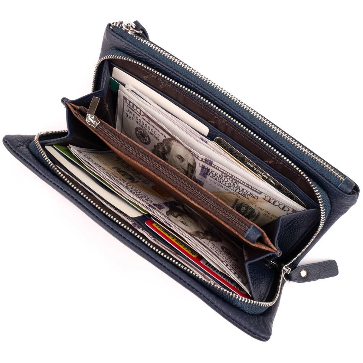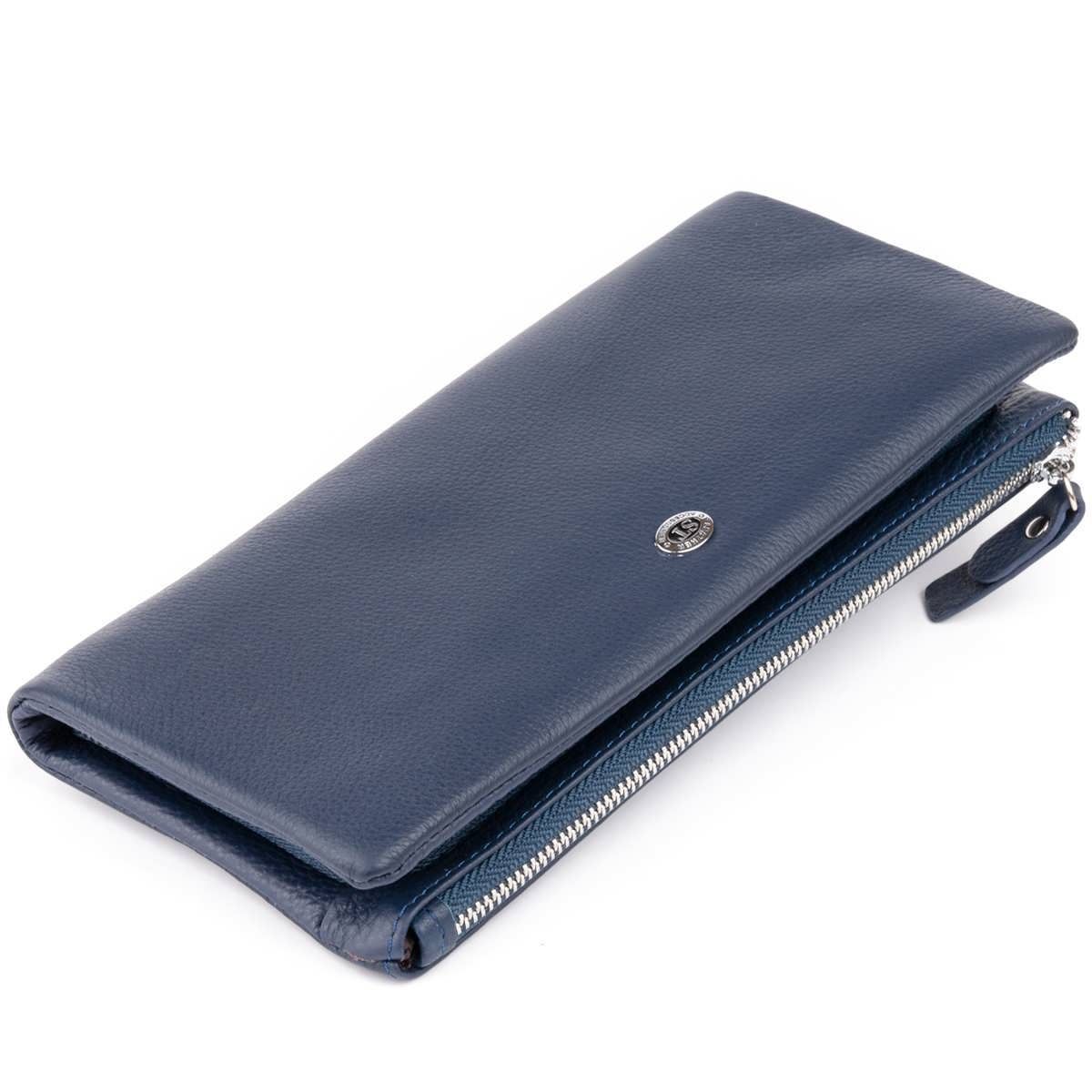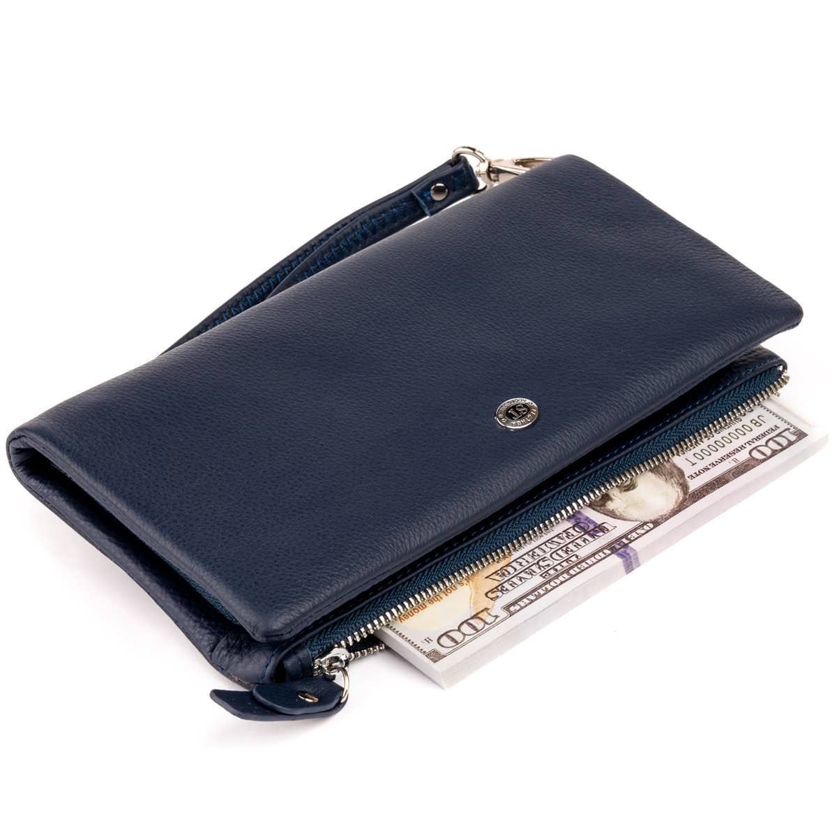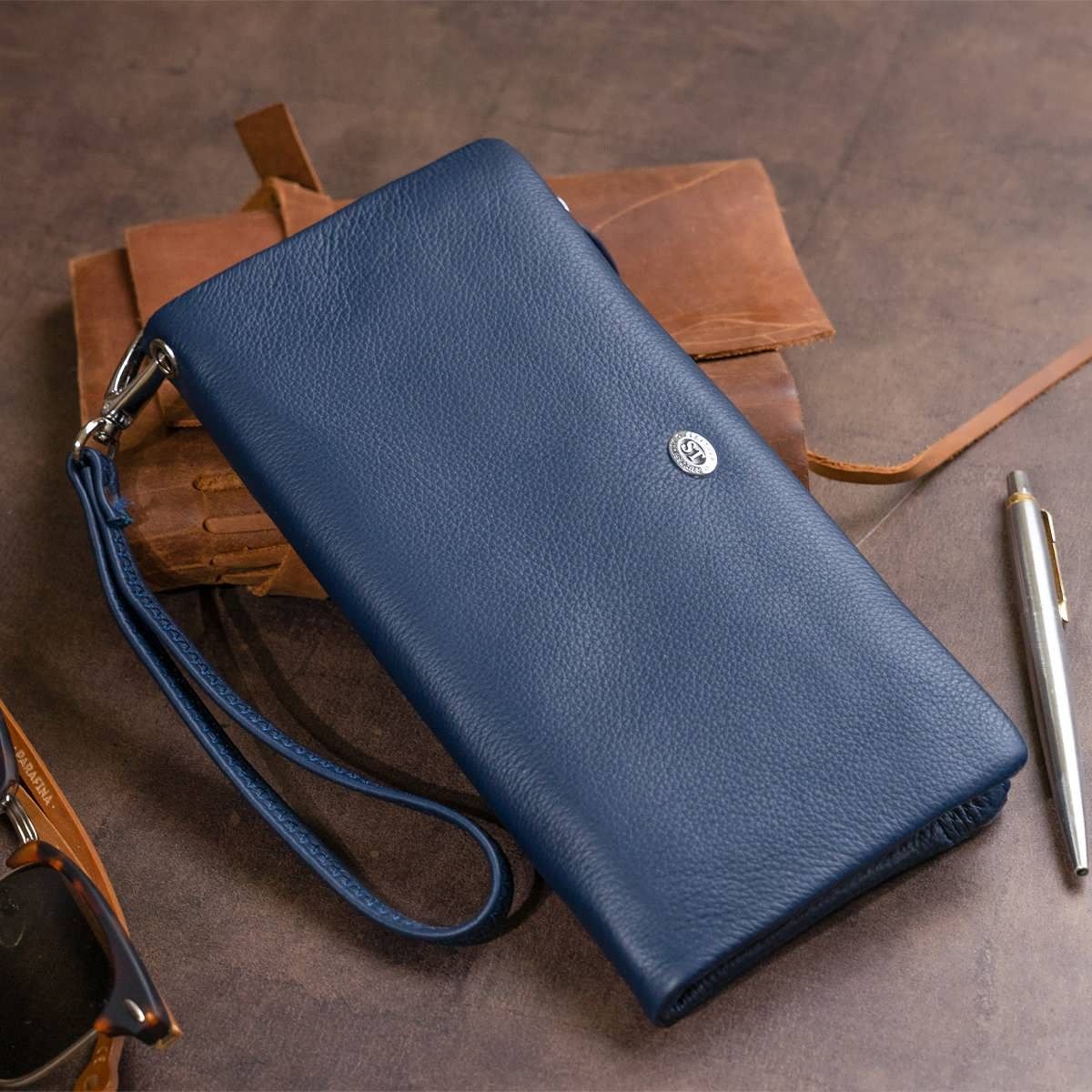 Кошелек-клатч из кожи с карманом для мобильного ST Leather 19309 темно-синий