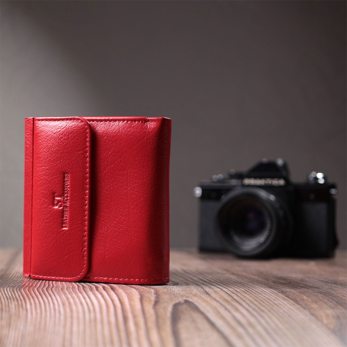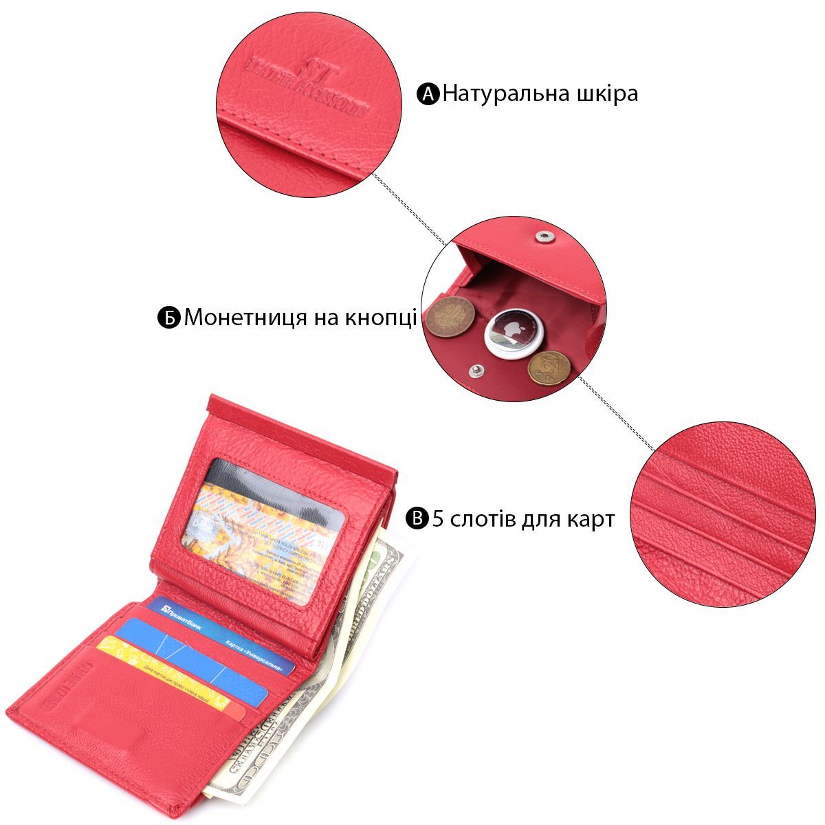 Гаманець середнього розміру для жінок із монетницею зовні із натуральної шкіри ST Leather 22720 червоний