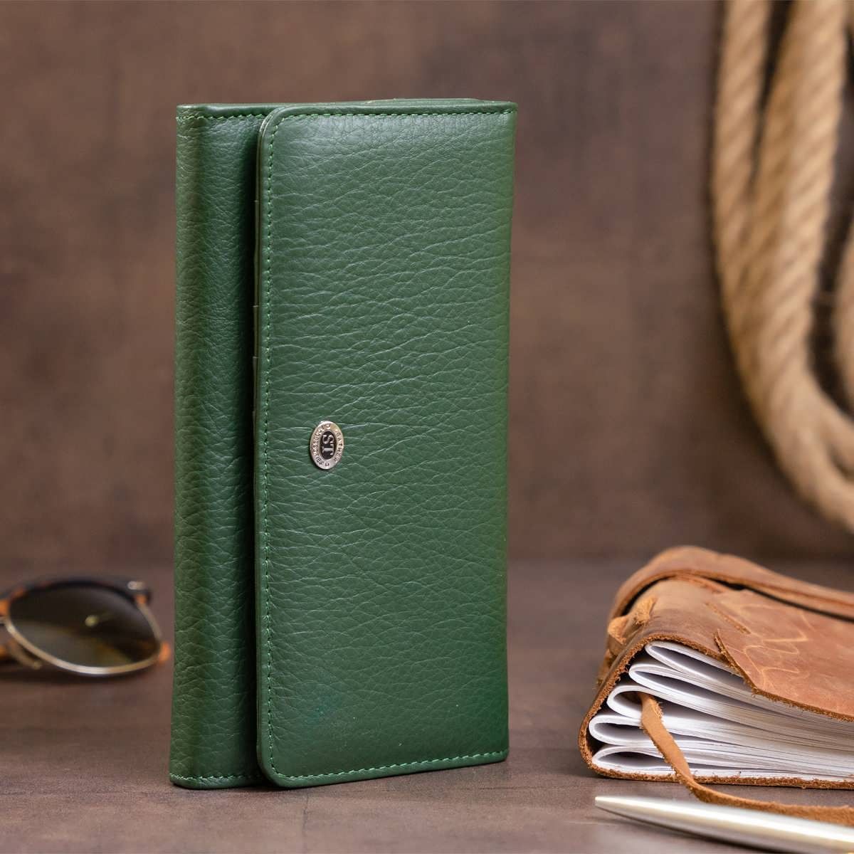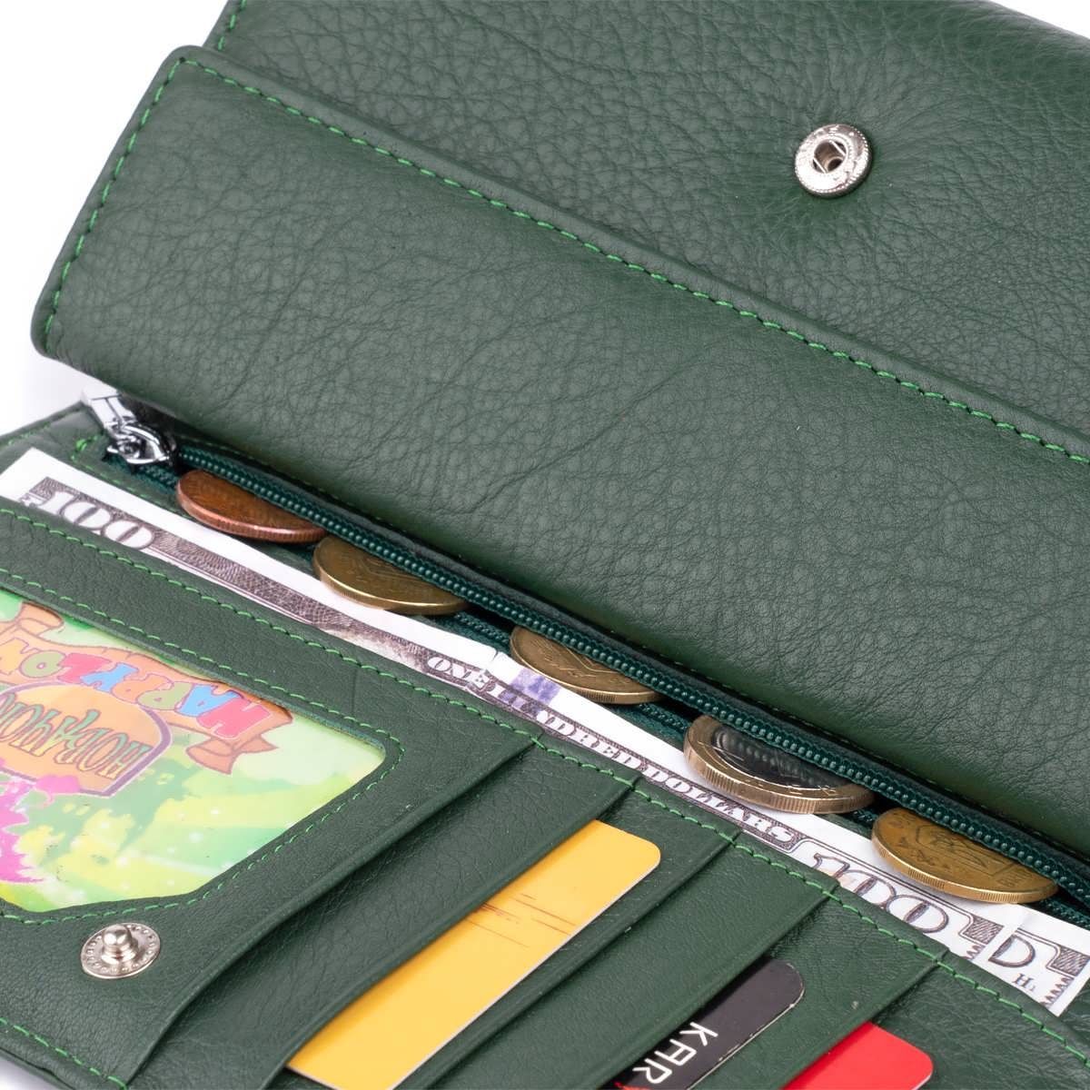 Кошелек кожаный в два сборки женский ST Leather 19286 зеленый