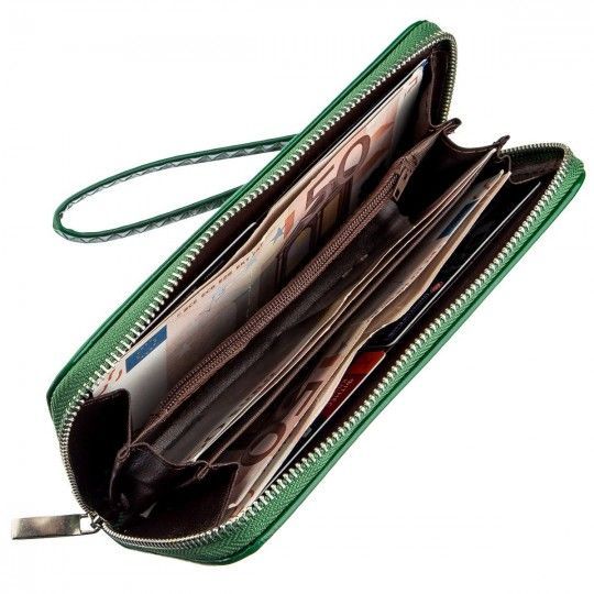 Ця модель – вибір класиків. Витриманий дизайн і зелений колір у поєднанні з доступною вартістю роблять гаманець привабливішим. Аксесуар підійде під будь-який стиль та образ. Ви можете носити цей гаманець як клатч. Виконана модель у гладкій екошкірі, яка блищатиме на сонці. Усередині гаманець виготовлений з екошкіри у поєднанні із міцним текстилем. Доповнює дизайн аксесуару металевого лого бренду на лицьовій стороні. Новинка вже заслужила на свою популярність серед наших клієнтів.