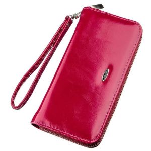 Гаманець жіночий на одну блискавку з екошкіри гладкий KIVI 19039 малиновий