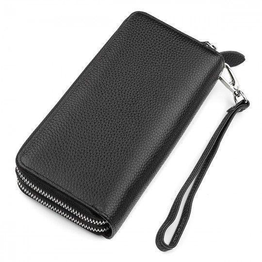 Очень удобен кошелек, из мягкой черной кожи, очень мягкой и приятной на ощупь. Состоит аксессуар из двух автономных отделений, которые закрываются надежной металлической молнией. На лицевой стороне аксессуара сияет фирменный логотип серебряного оттенка, а в комплектацию входит ремень на руку, чтобы использовать как клатч, так и красивую коробку.