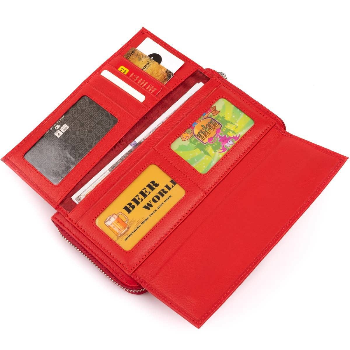 Очень вместительный кошелек-клатч яркого красного цвета из натуральной кожи. Изделие выполнено из натуральной кожи. Кожа очень мягкая и эластичная. Наличие различных отделений позволяет разложить все ваши вещи в полном порядке. Кошелек легко сможет заменить вам клатч и будет его удобно носить на запястье. Модель упакована в фирменную коробку и идеально подойдет для подарка близкому человеку.