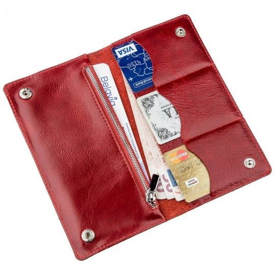 Яркий, стильный, мягкий и блестящий кошелек из натуральной кожи. Модель отлично переливается на солнце и выглядит просто роскошно. Изделие отлично помещается в дамскую сумочку и станет незаменимым ассистентом. Прошито по краям красной прочной нитью в дизайне изделие. На лицевой стороне аксессуара тисненый логотип бренда. Модель закрывается на две кнопки сверху и снизу. Внутри кошелек также выполнен из натуральной кожи. Производство – Украина. В создании кошелька использовались только проверенные материалы и отточенная технология. Мы уверены, что модель понравится ее владельцу.