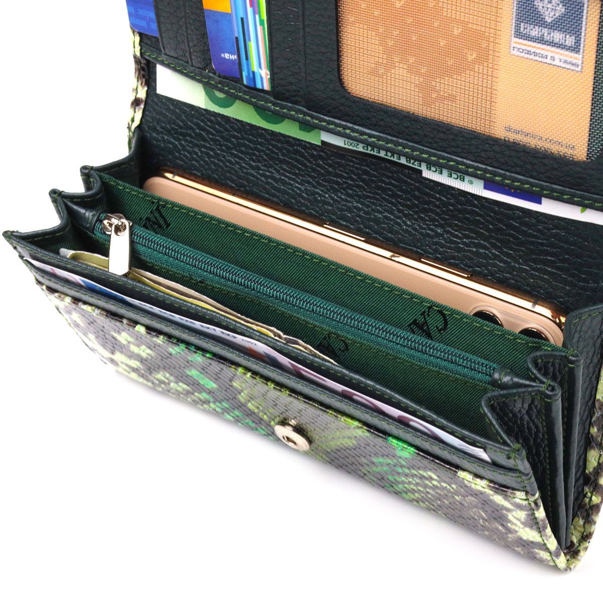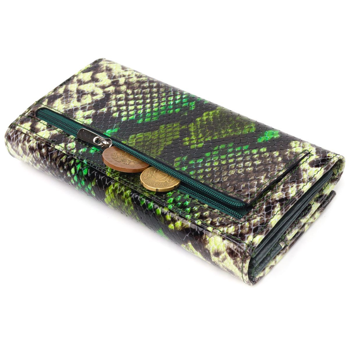 Красивый горизонтальный женский кошелек из натуральной кожи с тиснением под змею. Canpellini 21650 разноцветный