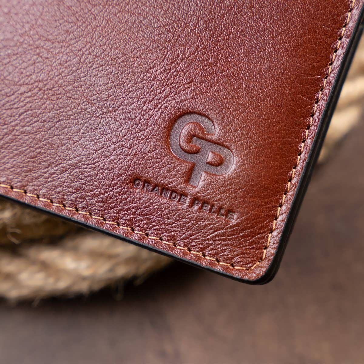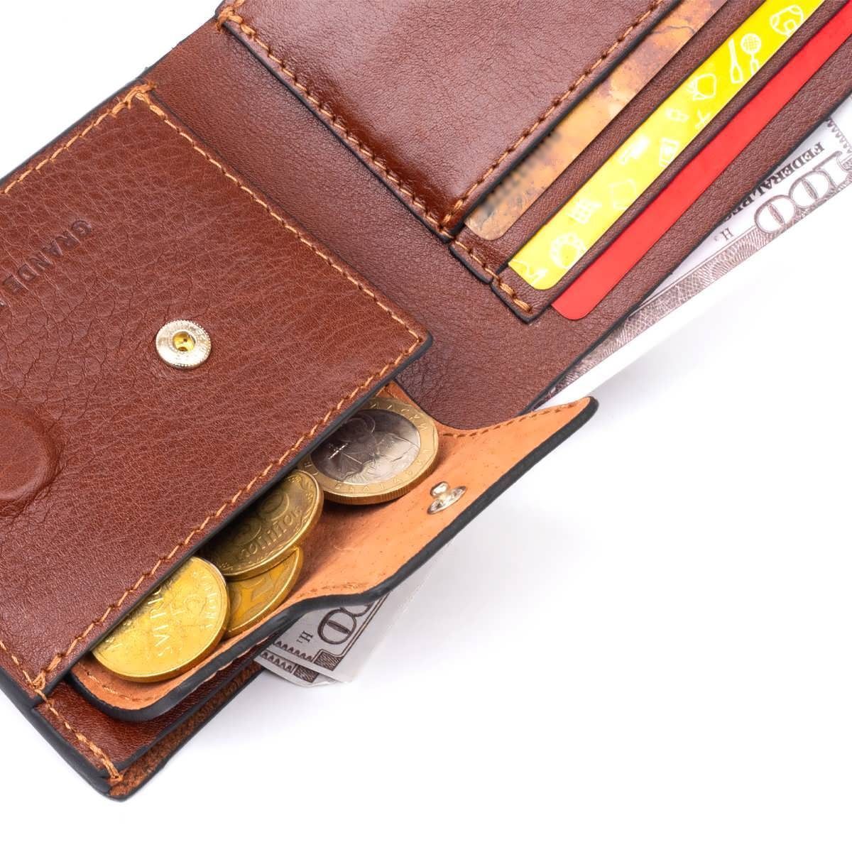 Горизонтальное портмоне в гладкой коже на магнитах Grande Pelle 11308 коричневое